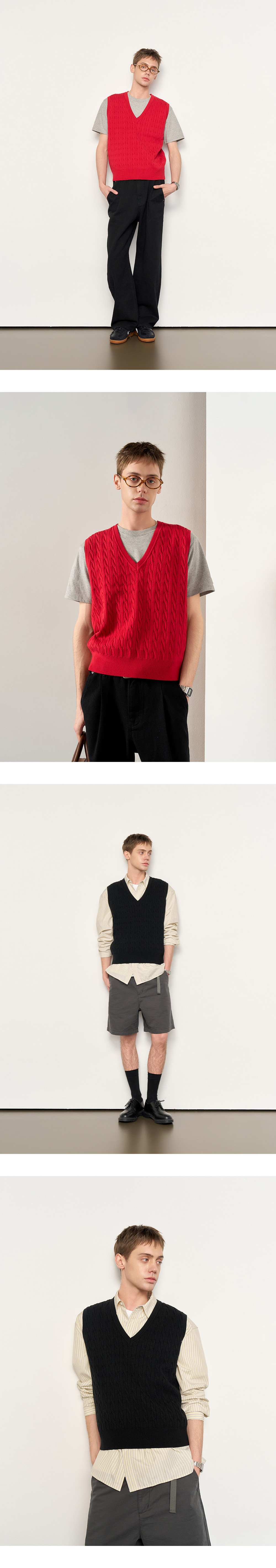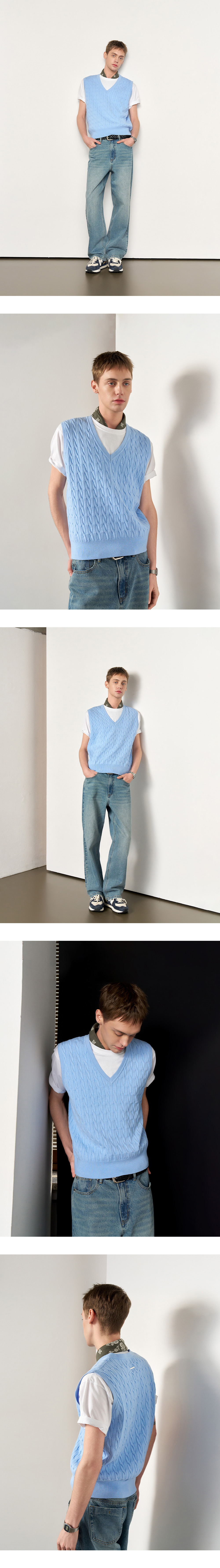 General Idea Man Essential V-Neck Cable Vest Sky Blue