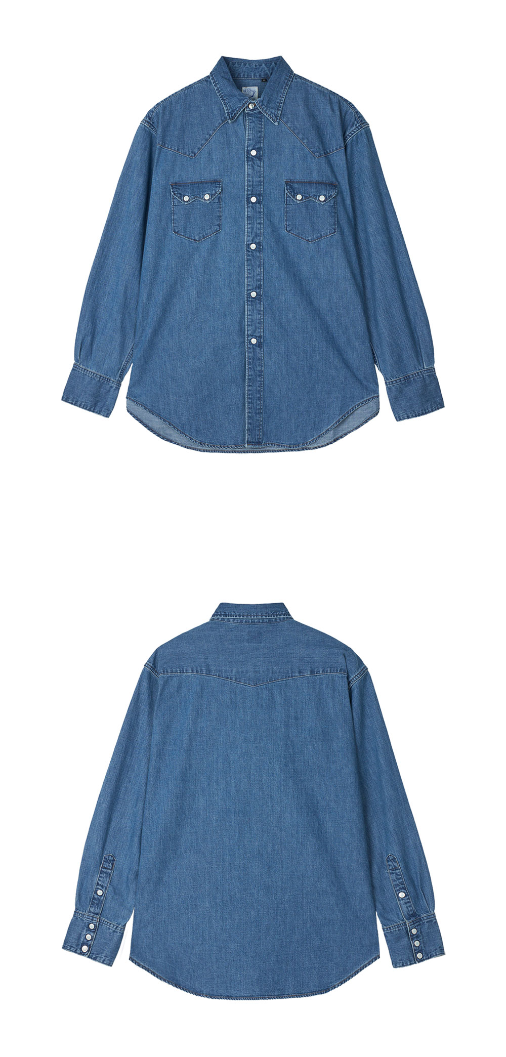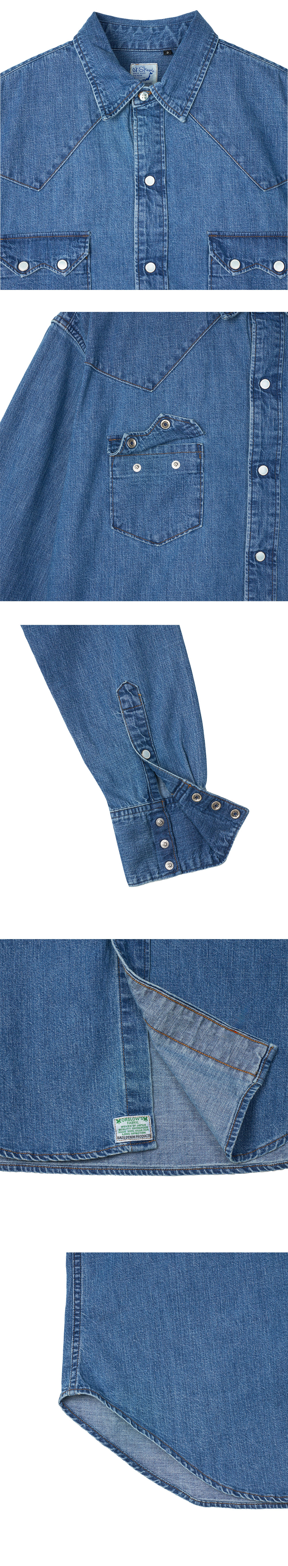 클래식한 웨스턴 디테일이 돋보이는 오어슬로우의 데님 웨스턴 셔츠 데님 유즈드입니다. - 100% 코튼 소재 - 턴다운 칼라 디자인 - 플랩이 있는 두 개의 체스트 포켓 & 프레스 스터드 버튼 - 웨스턴 감성의 요크 디테일 - 버튼 커프스 마감 - 릴랙스드 핏