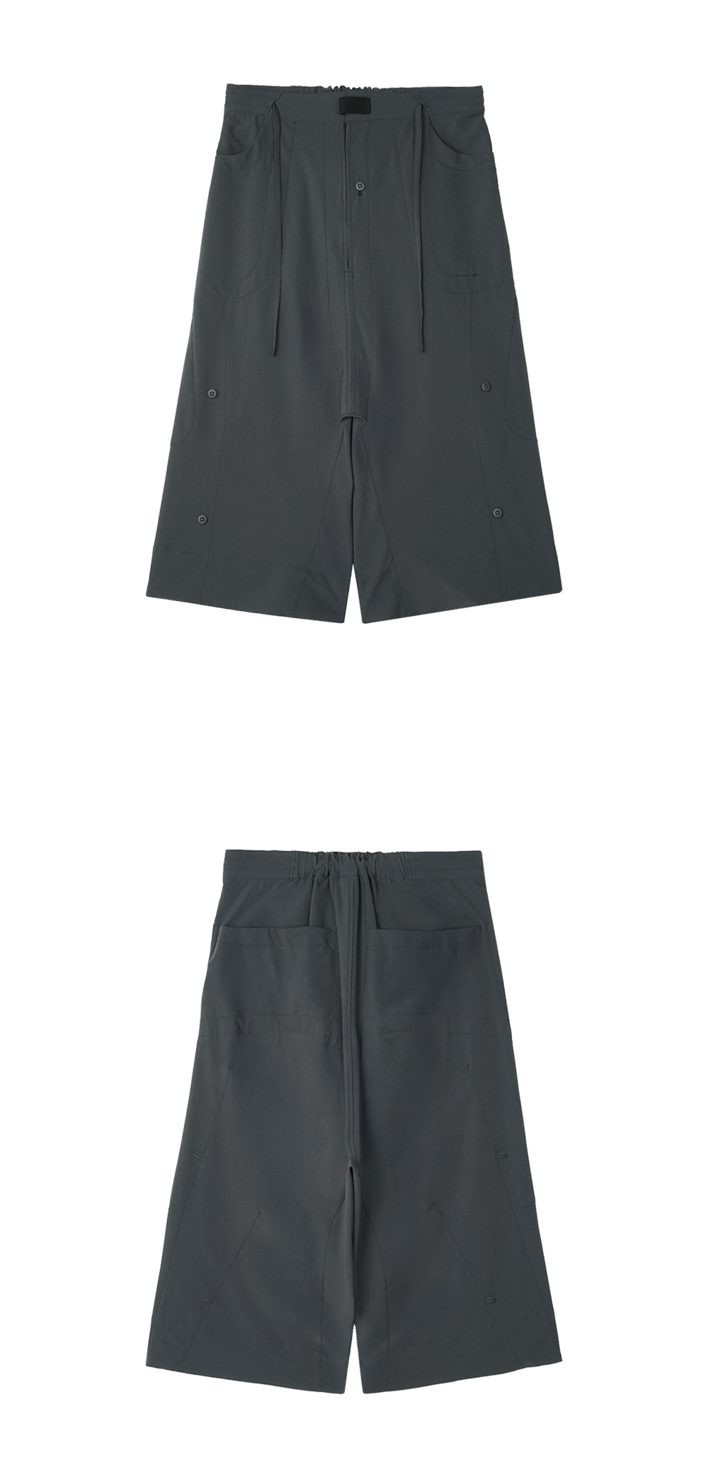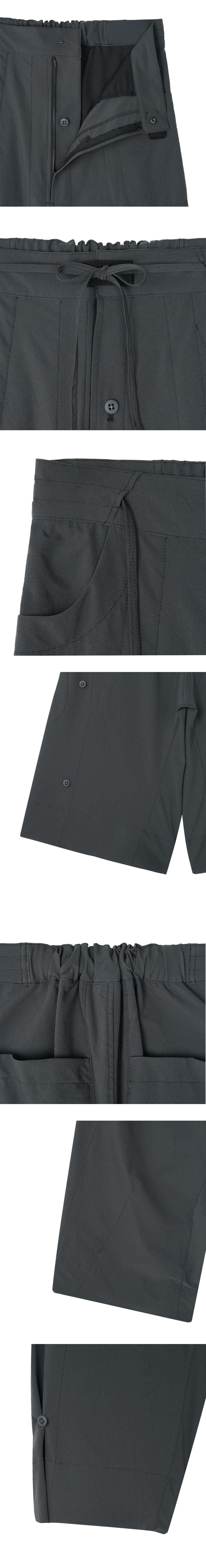 깔끔한 허리 라인에서 밑단으로 퍼지는 와이드 실루엣이 특징인 지안 예의 루저 팬츠 차콜입니다. - 부드럽고 텍스처가 돋보이는 립 소재 - 유니크한 패널 패턴 & 스티치 디테일 - 편안한 착용감을 위한 허리 밴딩 - 와이드 핏으로 흐르는 듯한 실루엣 - 사이드 버튼으로 다양한 실루엣 연출 가능