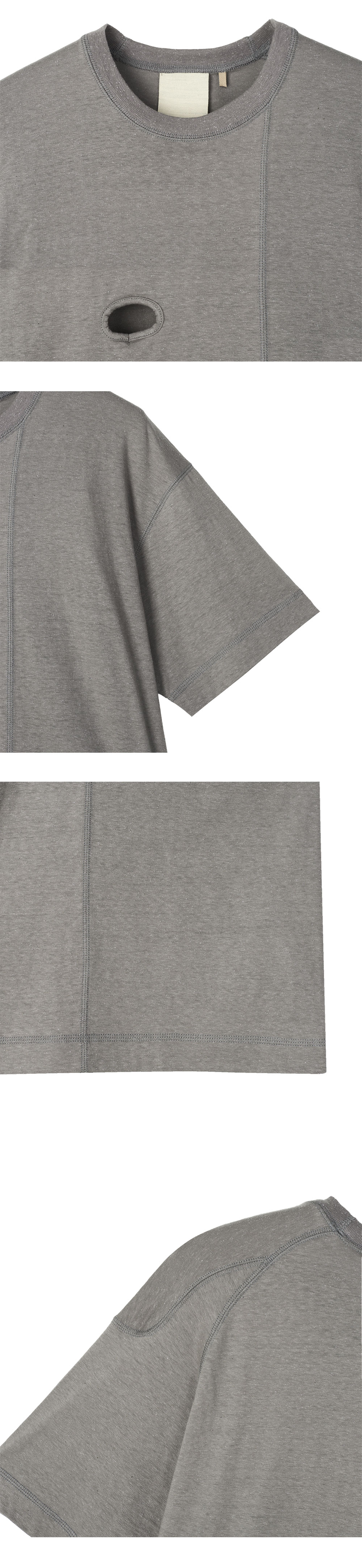 프론트의 구멍과 스티치 디자인이 특징인 지안 예의 원아이 티 그레이입니다. - 오른쪽 눈 부분 컷아웃 디테일 - 풀페이스 마스크처럼 변형 착용 가능 - 프론트 스티치 & 컷아웃 디자인 - 네피 텍스처가 돋보이는 100% 코튼 소재 - 부드러운 촉감과 내추럴한 무드 - Made in Japan