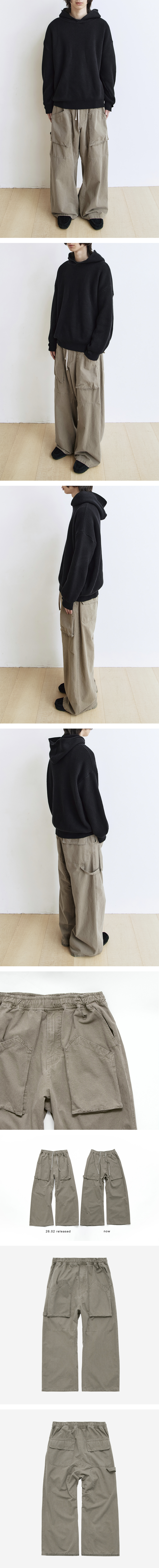 painter pajama pants - 전면 입체 패치 포켓 및 페인터 팬츠 디테일 적용 - 착용 시 슈즈 위로 부드럽게 떨어지는 실루엣 - 와이드-플레어드-배기 사이의 실루엣 - 밴딩 웨이스트 - 뒷면 플랩 포켓과 페인터 팬츠 디테일 - 후면 밑단 덧댐 디테일 - 키링 결착 가능한 전면 D링 디테일 - 넉넉한 기장으로 완성되며, 선호에 따라 기존 팬츠 제품 대비 조금 더 높은 위치로 올려입어 착용하셔도 무방한 패턴 *모델: 178cm / 마른 체형, 3사이즈 착용 *직전 차수 대비, 금번 차수의 경우 유사한 컬러감, 유사한 피팅감으로 제작되었습니다.