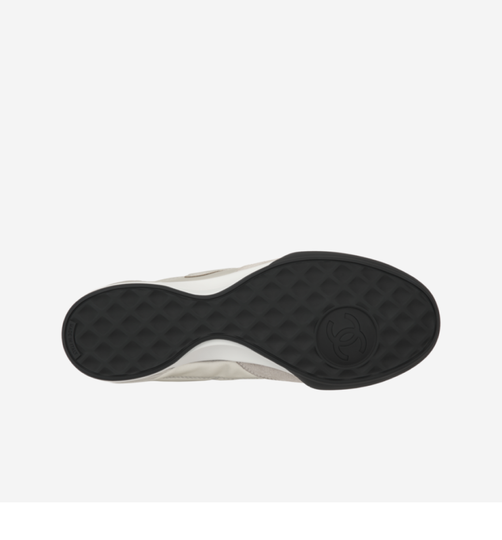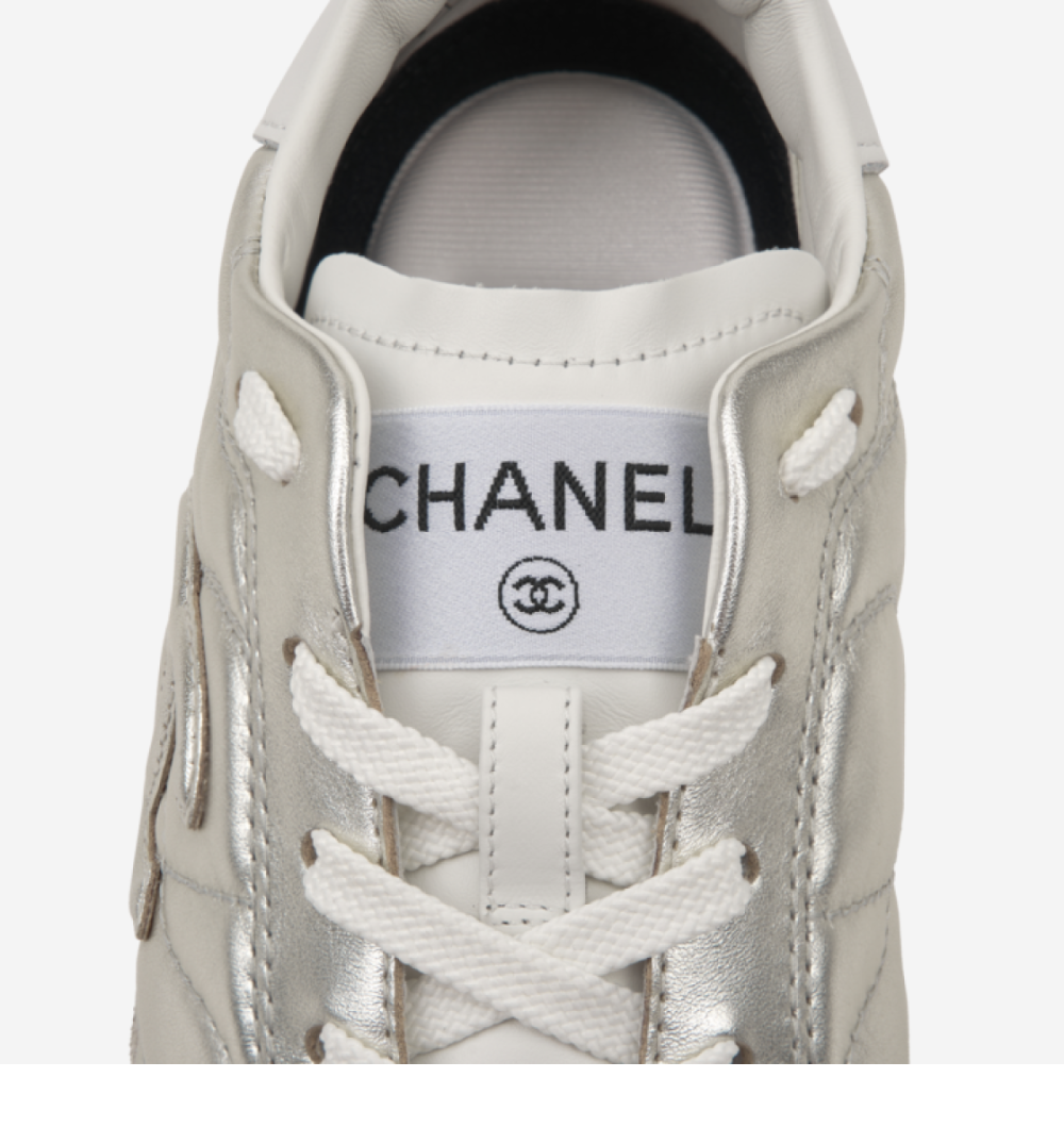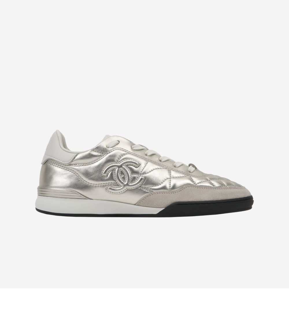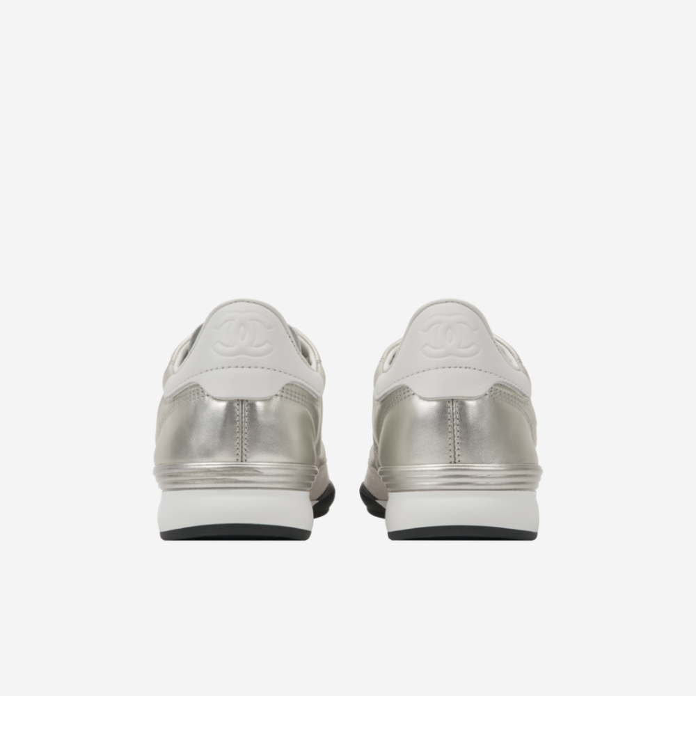 (W) 샤넬 스니커즈 라미네이티드 카프스킨 카프스킨 스웨이드 카프스킨 & 실버 화이트