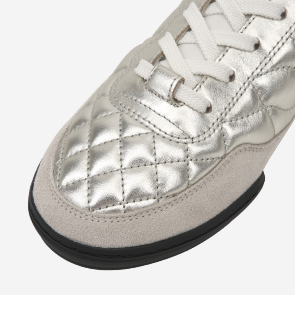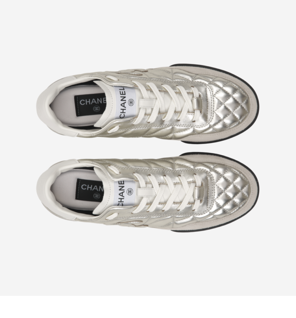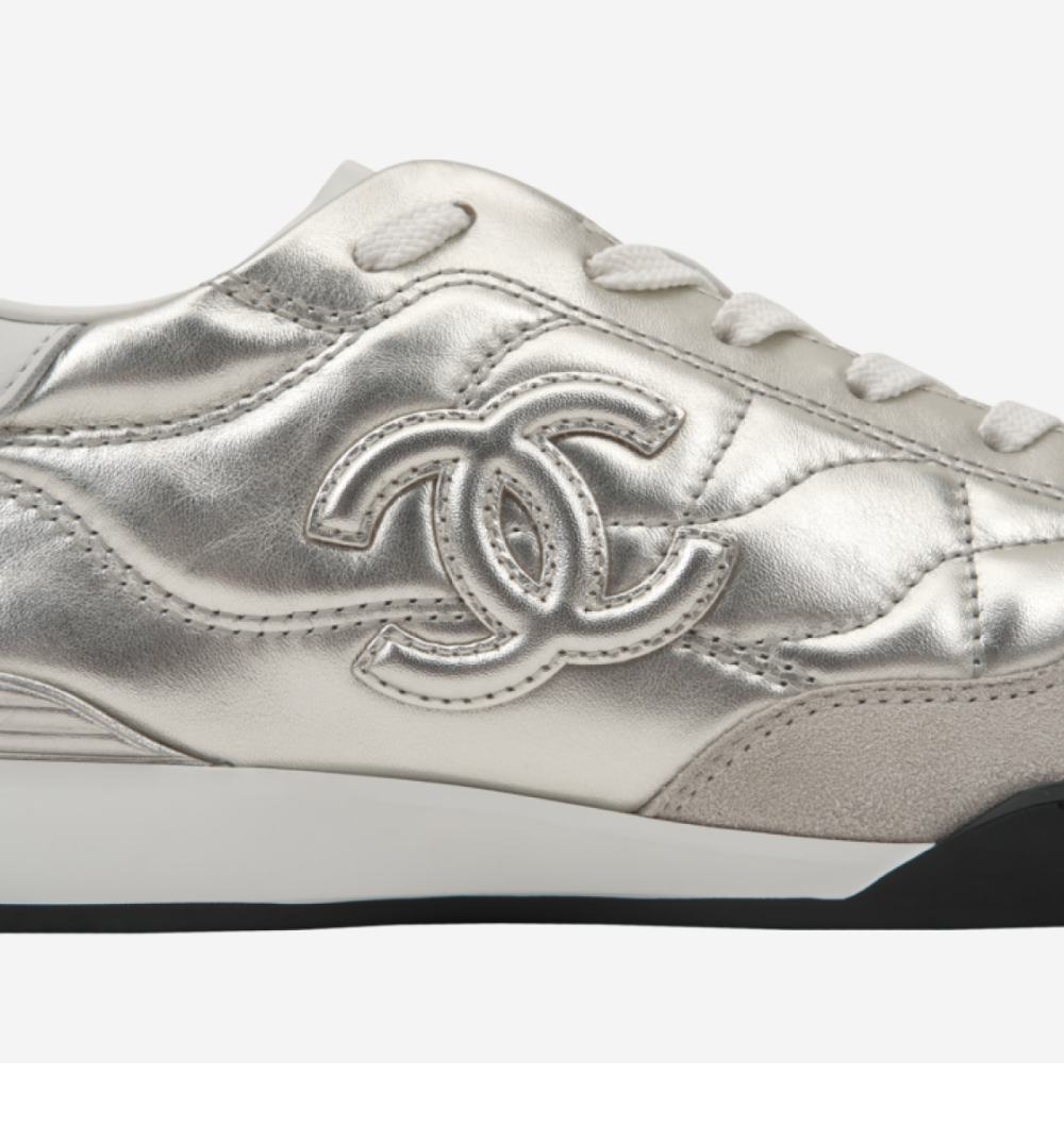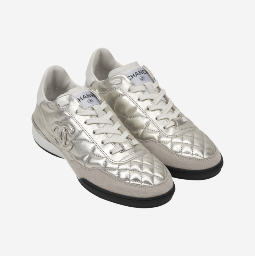 (W) 샤넬 스니커즈 라미네이티드 카프스킨 카프스킨 스웨이드 카프스킨 & 실버 화이트