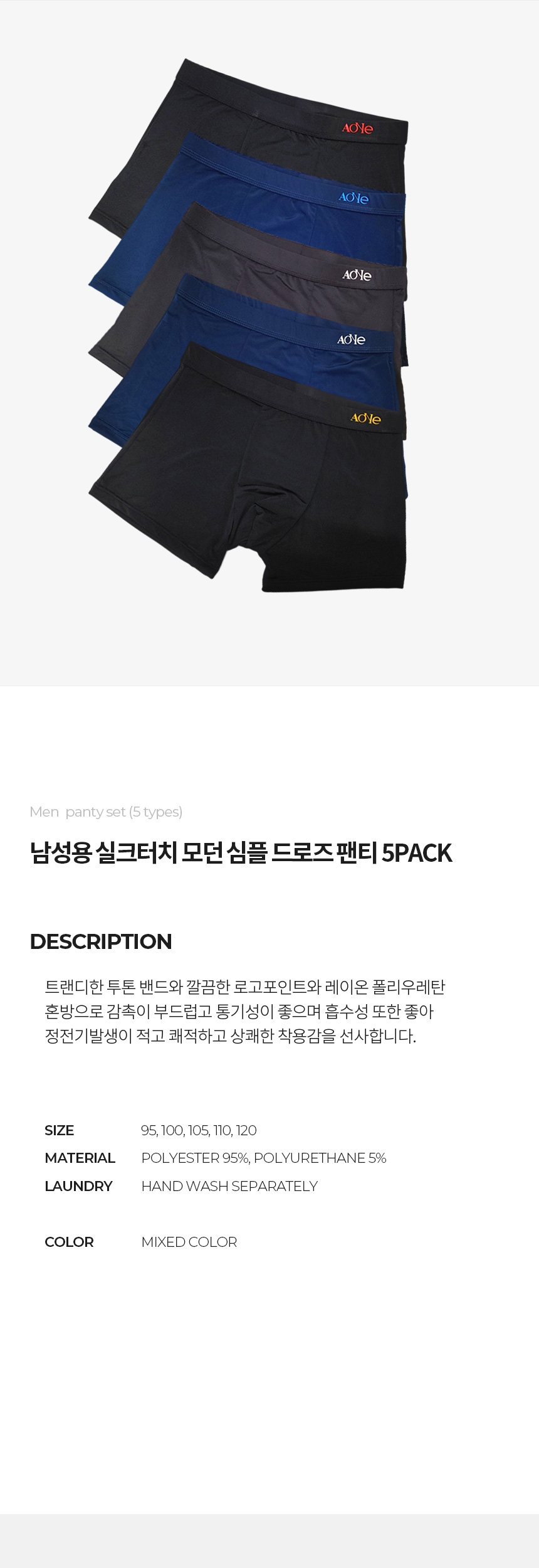 [3% 적립] AONE Silk Touch Modern Simple Boxer Briefs Set 5 Pack