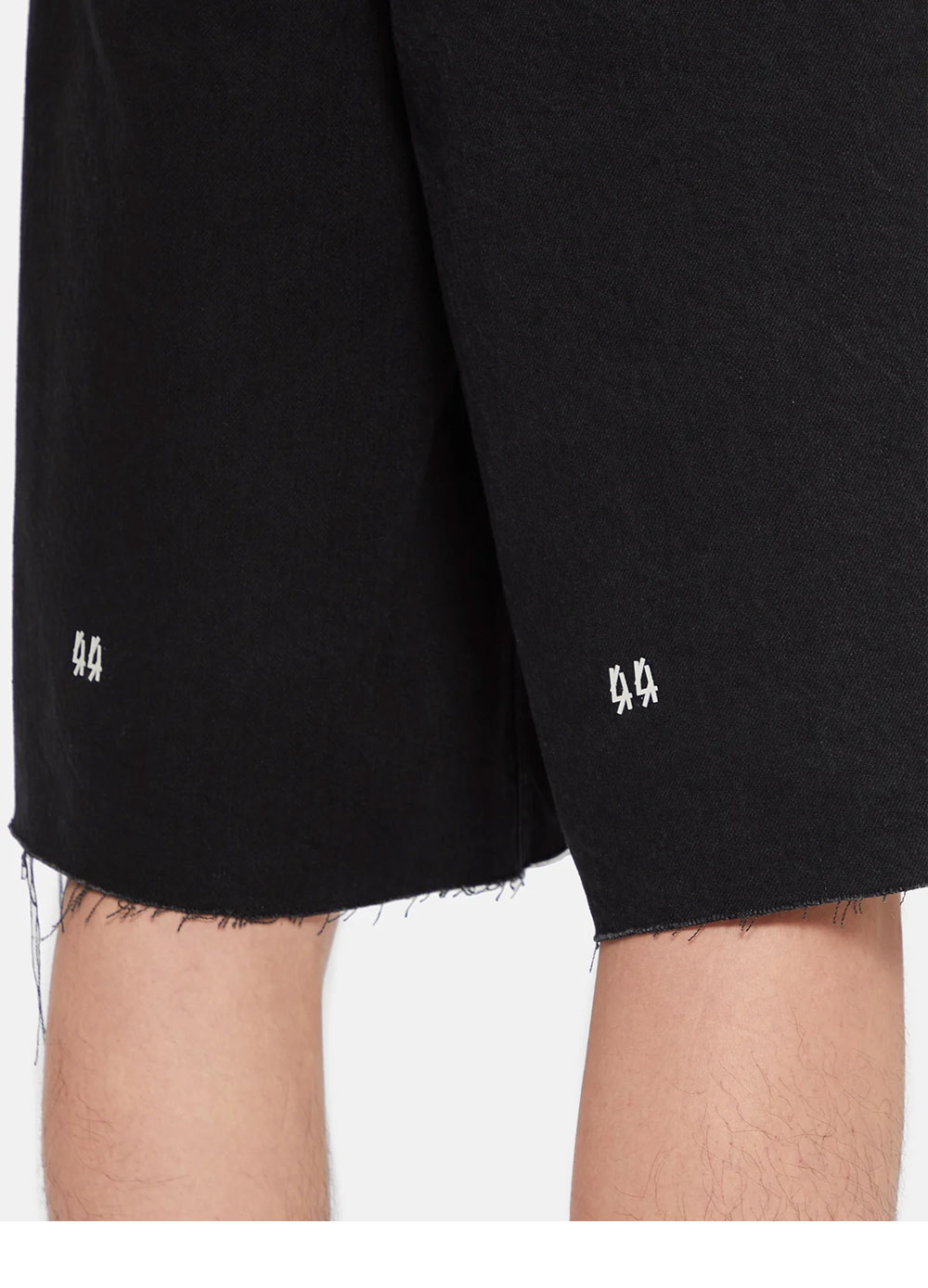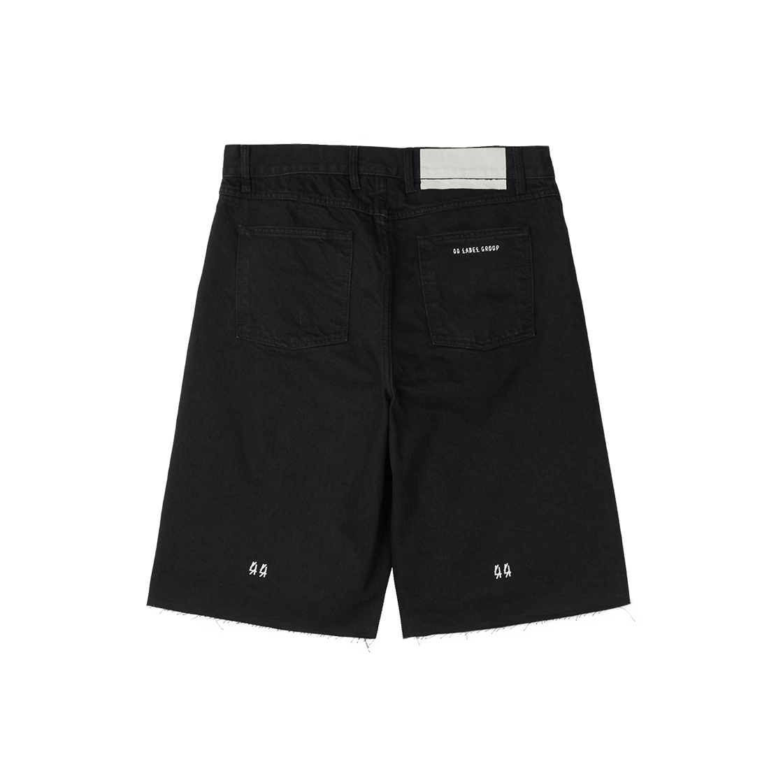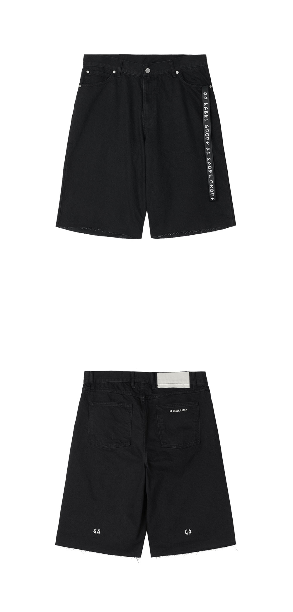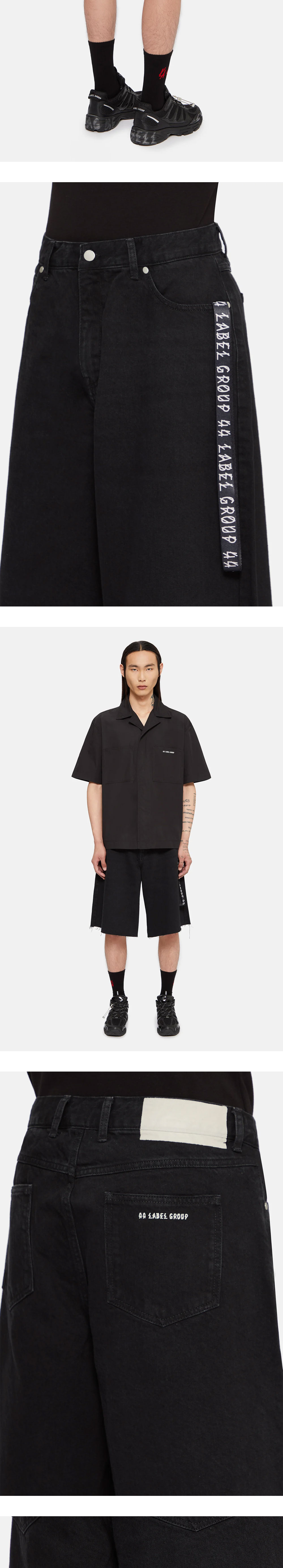베이직한 실루엣과 컬러감으로 활용도가 높은 44 Label Group의 Pappas Short Black입니다. -5포켓 디자인 -허리 뒷 부분 브랜드 패치 -뒷면 44 로고 디테일 -밑단 raw-edge 마감 -wide fit