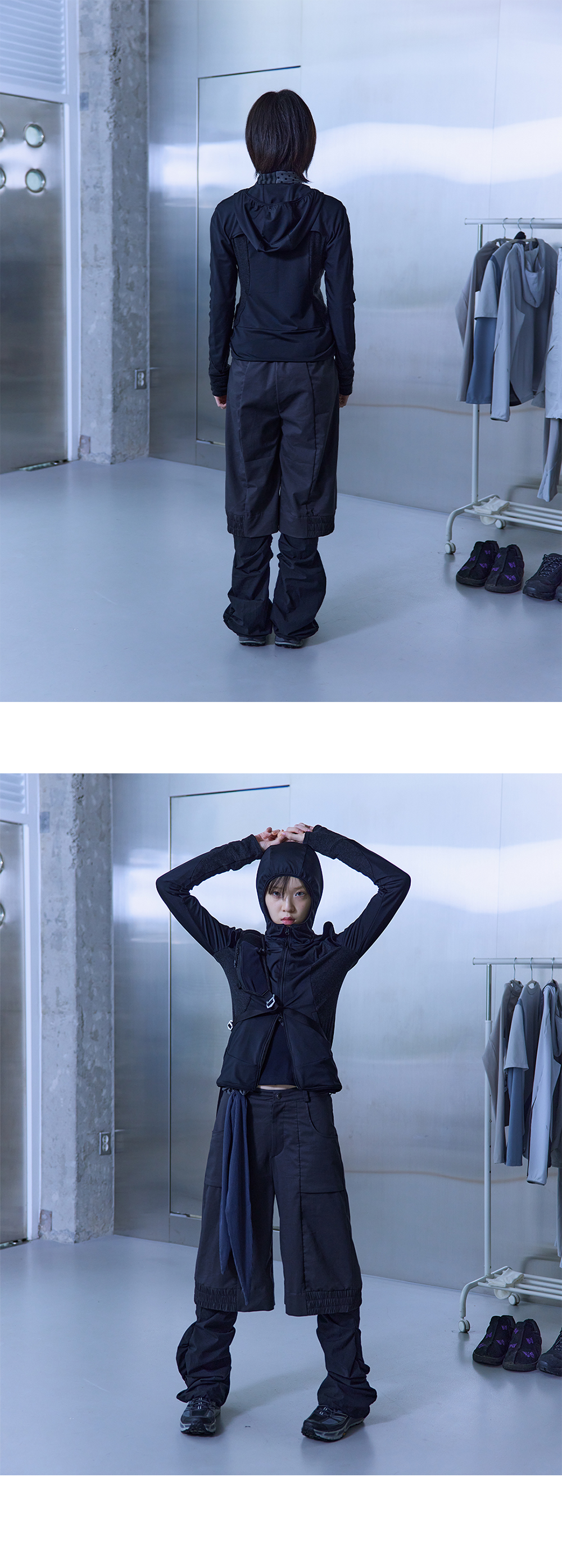슬림 핏 2-way zipper 텐셀 스판 원단으로 유연한 착용감 전면 양 사이드 포켓 후드 & 소매 접밴드 디테일 2가지 텍스처 배색 디테일 소매 절개 디테일