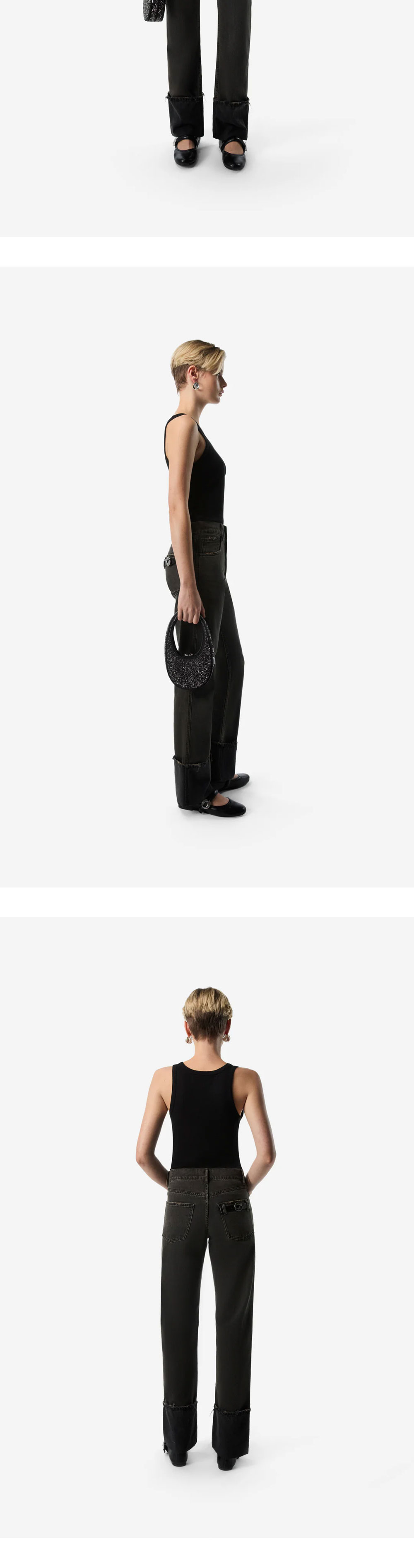 헐렁한 보이프렌드 핏이 매력적인 코페르니 우먼 보이프렌드 데님 팬츠 블랙입니다. - 부드러운 프리미엄 블랙 데님 - 미드 라이즈 - 뒷 주머니에 스트랩 포인트