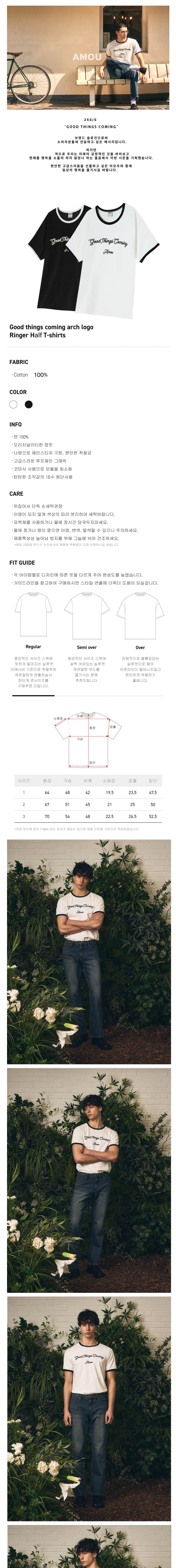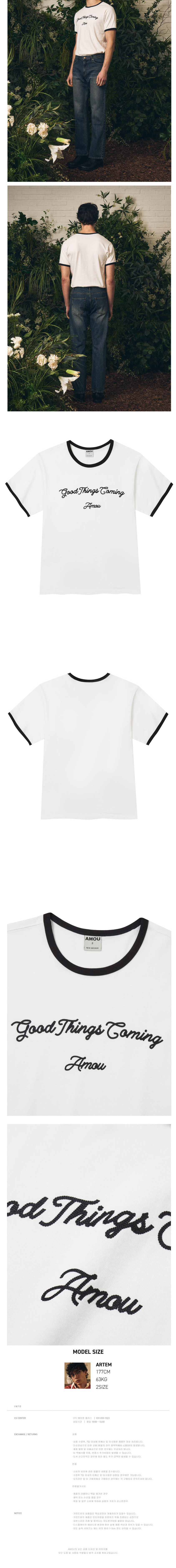 아모우 굿띵스 커밍 아치 로고 링거 하프티셔츠 화이트