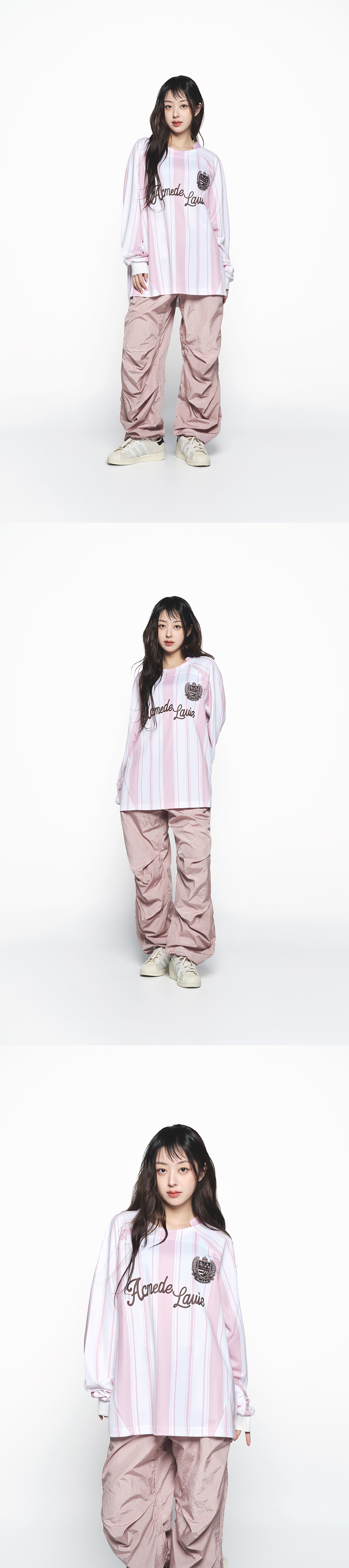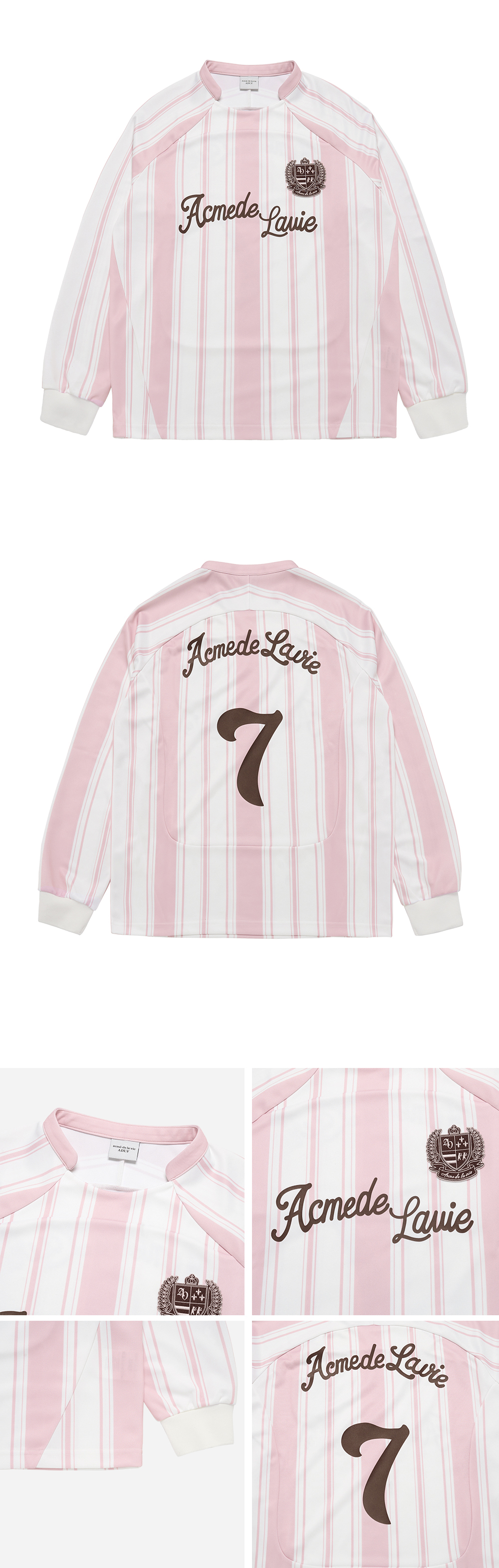 ACME DE LA VIE Stripe Football Jersey Long Sleeve T-Shirt Light Pink