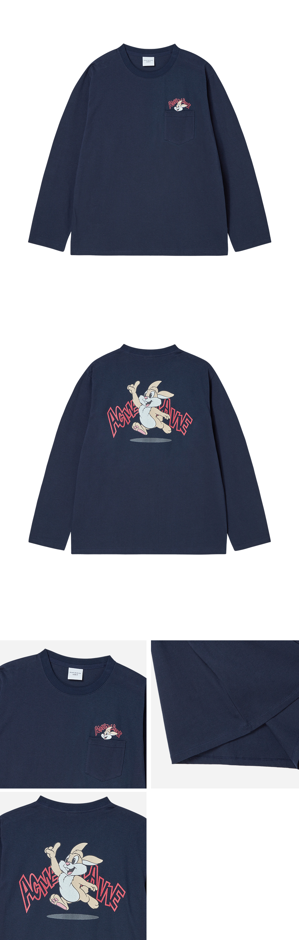 아크메드라비 카툰 친칠라 롱 슬리브 티셔츠 다크 네이비