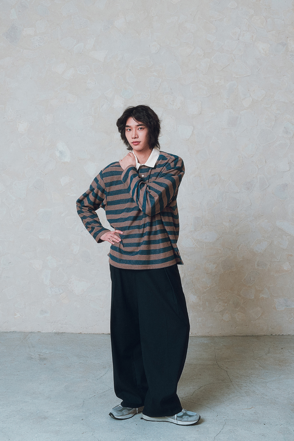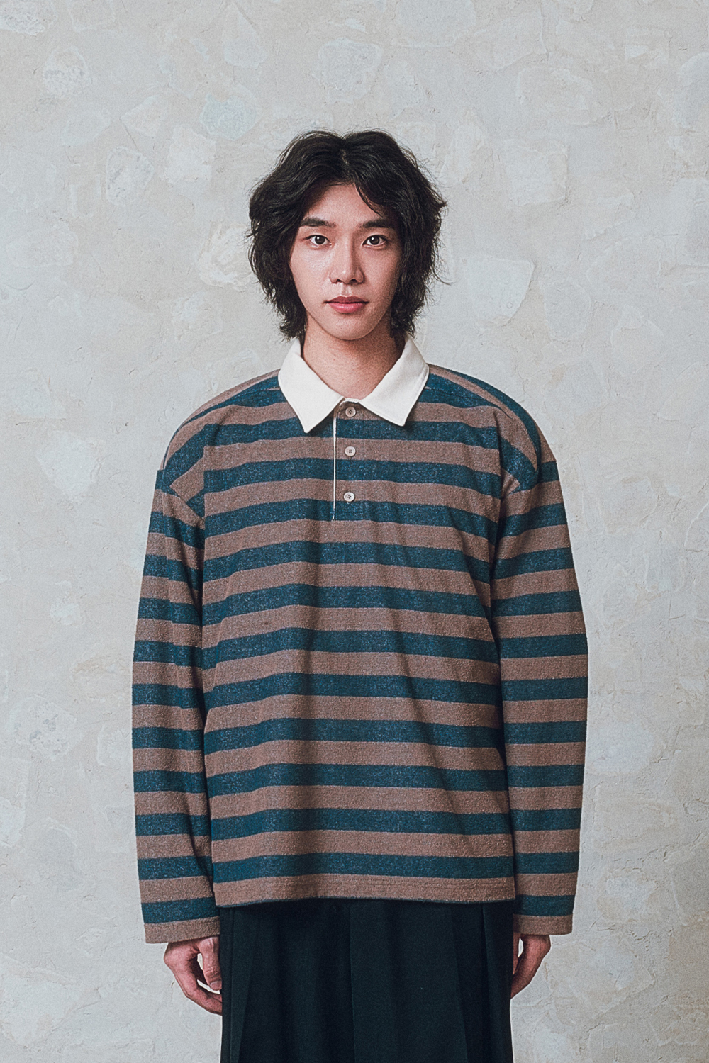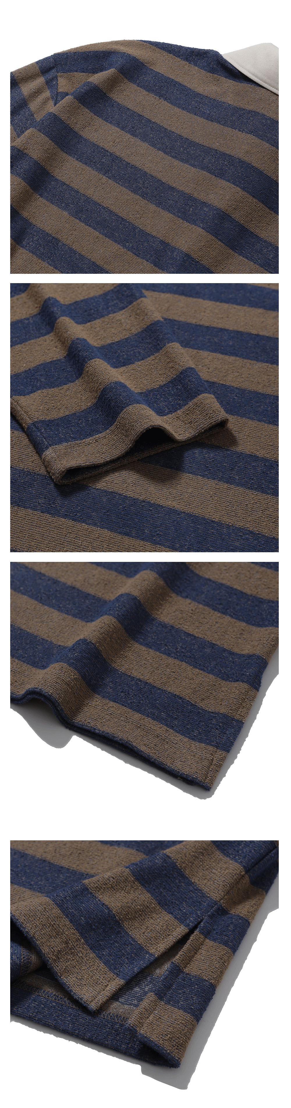 발루트 부클 스트라이프 카라 티셔츠 브라운 네이비