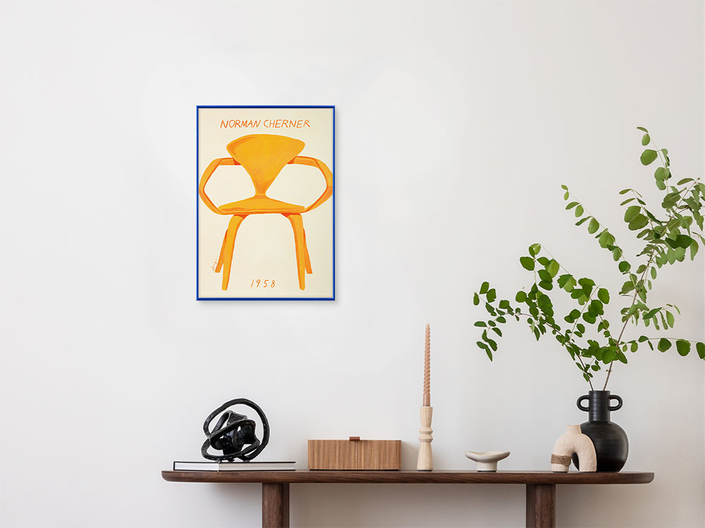 작가명 : 아방 크기 : Image 59.4 x 42cm / Frame 60 x 42.5cm (A2) 제작방식 : Pigment print on paper 소재 : Blue aluminium frame, acrylic 아방의 그림 속 의자들은 어떤 이야기를 담고 있을까. 프린트베이커리와 아방작가가 콜라보레이션하여 제작된 "체어 컬렉션' 아트포스터 시리즈이다. 아방의 ‘체어 컬렉션’ 시리즈는 일상 속에서 편안함을 전하는 ‘의자’를 작가의 시선으로 담아내었다. 단 100장으로 한정 제작된 시리즈는 소장 가치가 있으며, 작은 변화로 집안의 분위기를 바꾸기에 탁월하다.