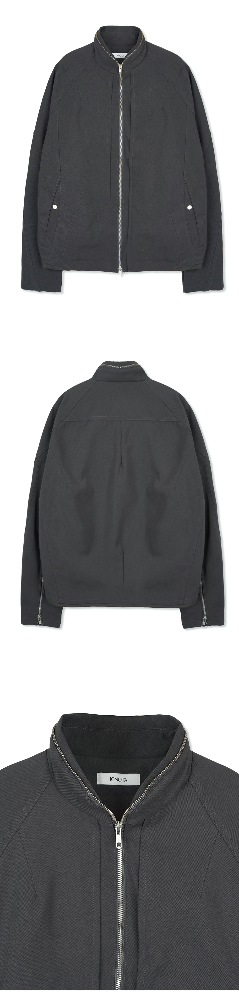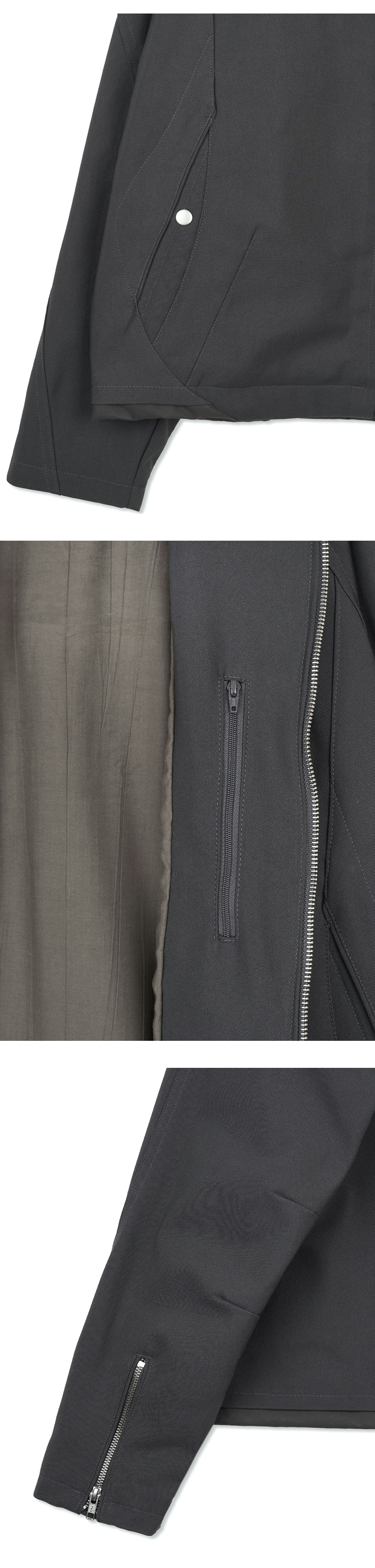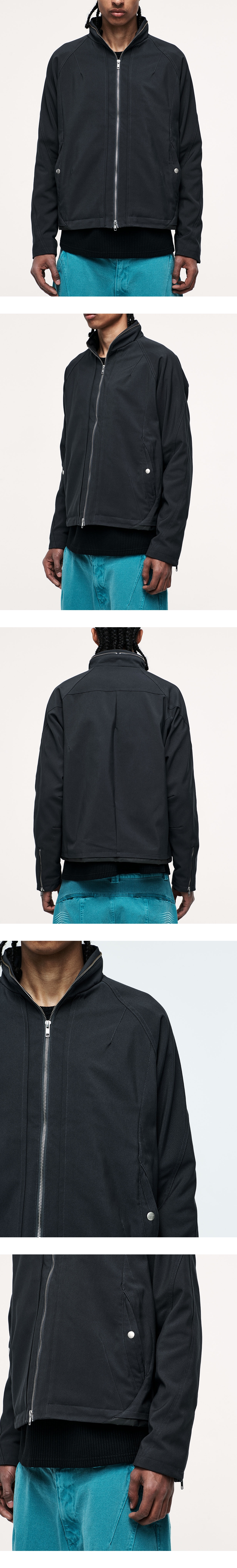 YKK 2WAY 지퍼 전면/후면 다트 스티치 전면 2개의 스냅 포켓 밑단 배색 원단 소매 지퍼 디자인 내부 1개의 지퍼 포켓 YKK 2WAY ZIPPER FRONT/BACK DART STITCH 2 FRONT SNAP POCKET HEM FABRIC PANNEL SLEEVE ZIPPER DESIGN 1 INSIDE ZIPPER POCKET
