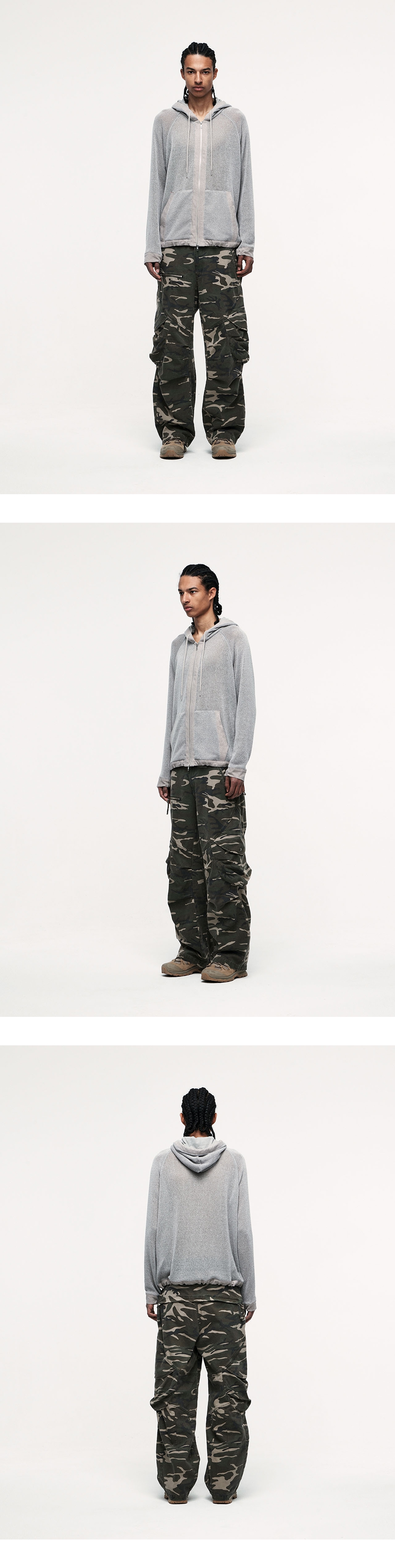 YKK 지퍼 바이오 워싱 기법 무릎 핀턱/다트 디테일 전면 작은 지퍼 포켓 입체 포켓 디자인 후면 히든 지퍼 포켓 YKK ZIPPER 바이오 워싱 기법 KNEE PIN TUCK/DART DETAIL FRONT SMALL POCKET 3D POCKET DESIGN BACK HIDDEN ZIPPER POCKET