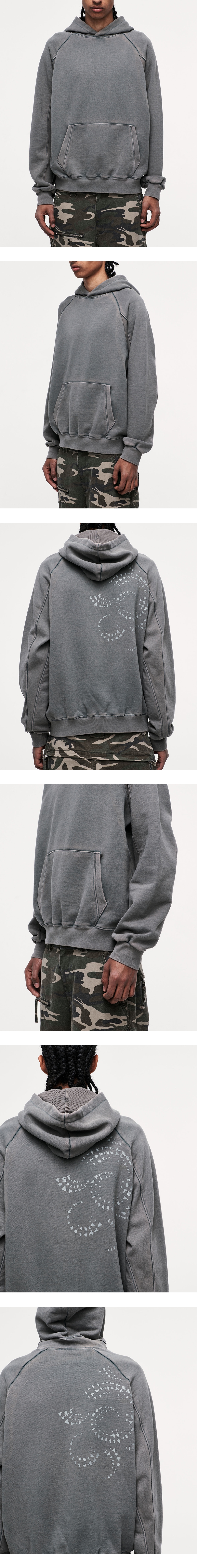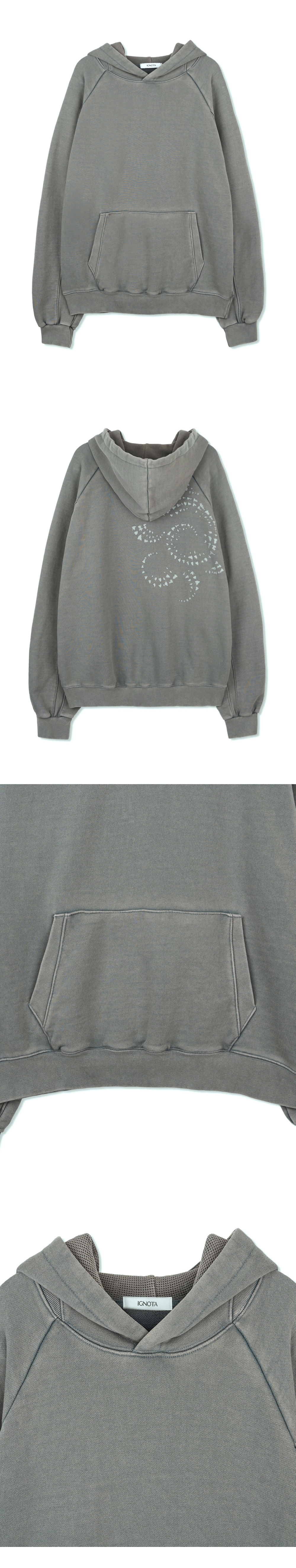 *워싱 과정에서 각 개체마다 차이가 있을 수 있으며, 워싱 특성상 미세한 데미지가 발생할 수 있습니다. 이는 자연스러운 공정의 일환으로, 불량이 아님을 참고 부탁드립니다. 미네랄 워싱 기법 래글런 디자인 후면 'AMMONITE' 그래픽 MINERAL WASHING TECHNIQUE RAGLAN DESIGN BACK 'AMMONITE' GRAPHIC