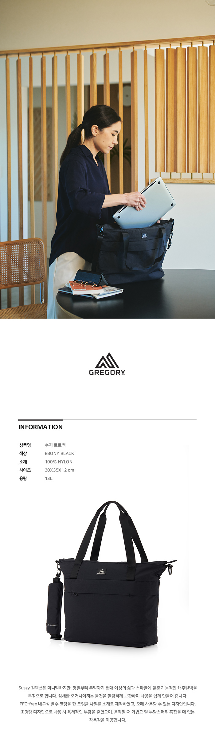 그레고리 수지 토트백 에보니 블랙