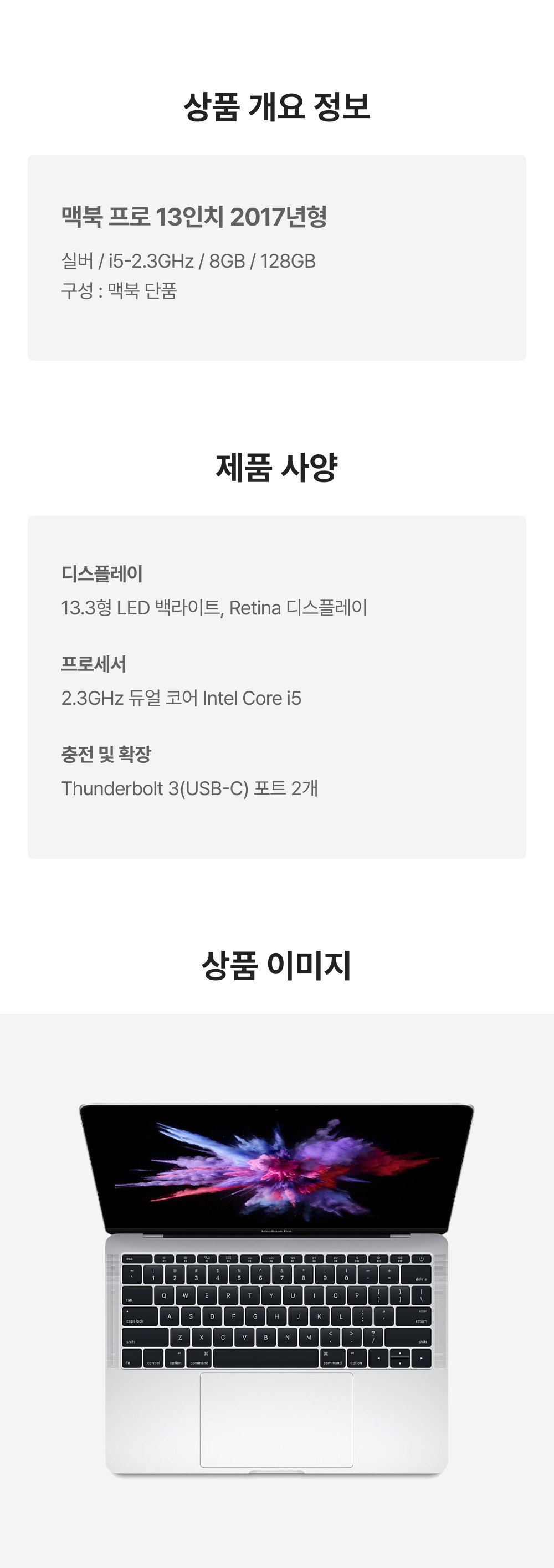 [B등급] 리퍼비시 2017 맥북 프로 13 i5-2.3GHz 128기가 SSD 8기가 램 실버