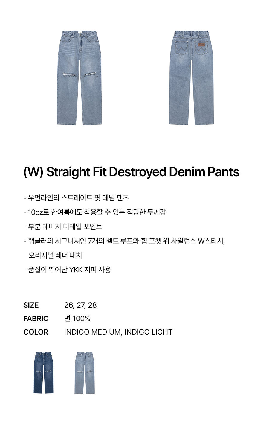 랭글러 (W) 스트레이트핏 디스트로이드 팬츠 인디고 라이트