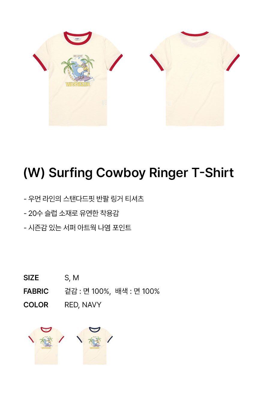 랭글러 (W) 서핑 카우보이 링거 티셔츠 레드