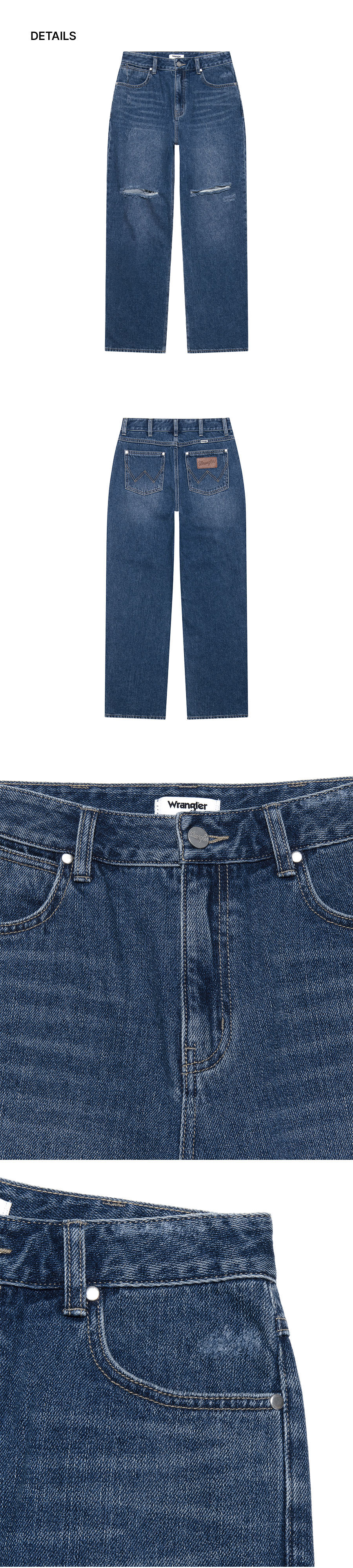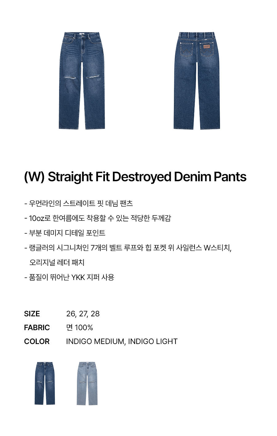 랭글러 (W) 스트레이트핏 디스트로이드 팬츠 인디고 미디움