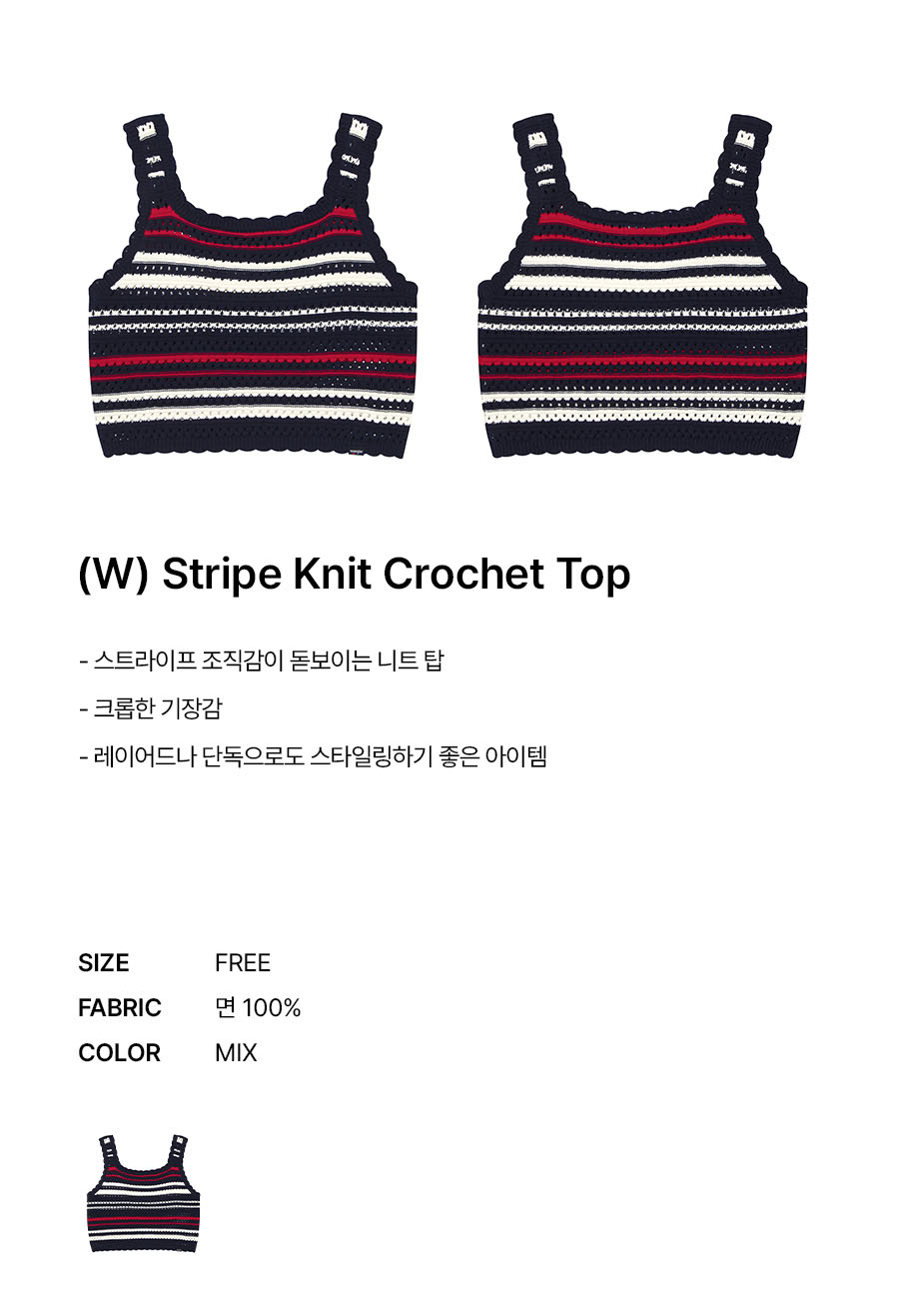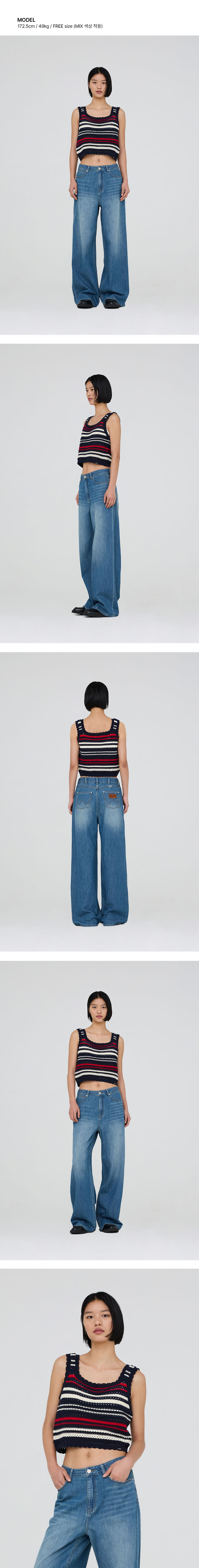 랭글러 (W) 스트라이프 니트 크로셰 탑 믹스
