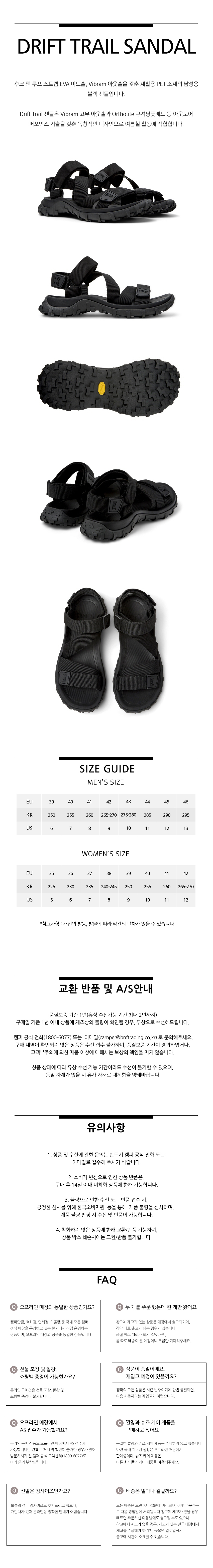 캠퍼 남성 드리프트 트레일 샌들 샌들 블랙