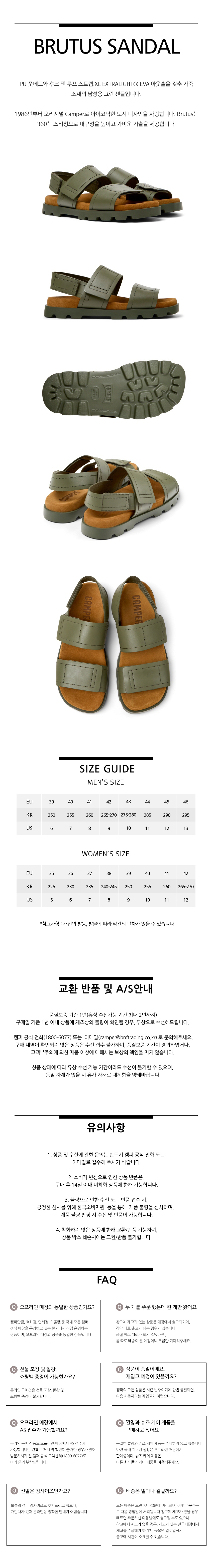 캠퍼 남성 브루투스 샌들 샌들 카키