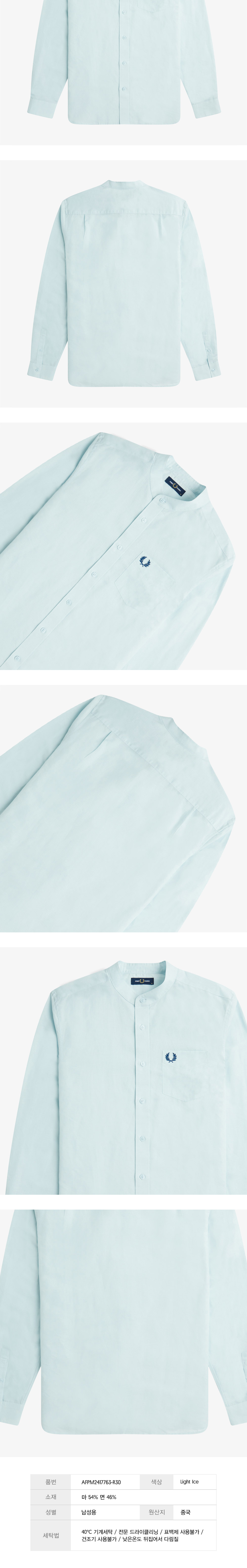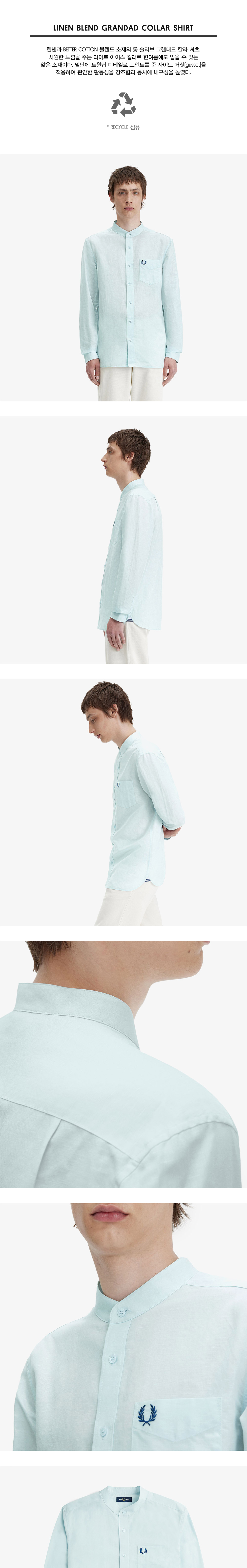 프레드페리 린넨 블렌드 그랜대드 칼라 셔츠 라이트아이스