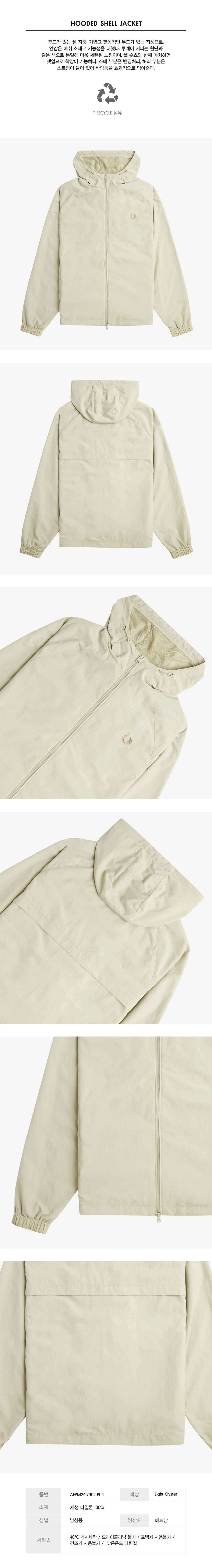 프레드페리 후드 쉘 자켓 라이트오이스터