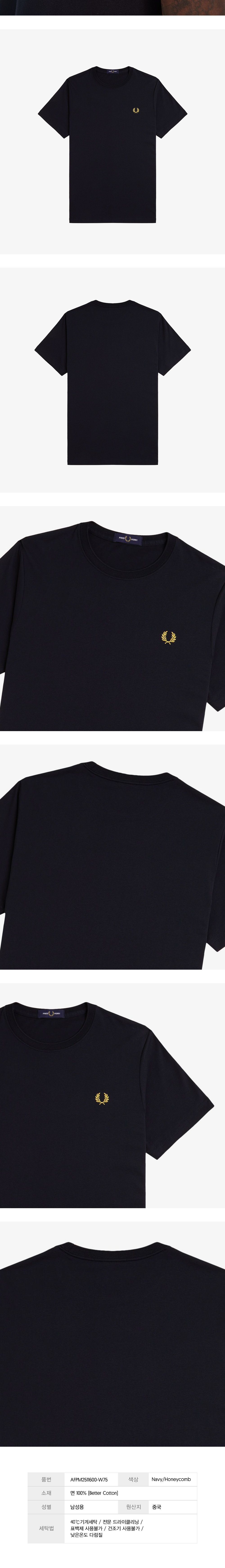 프레드페리 크루넥 티셔츠 네이비/허니콤
