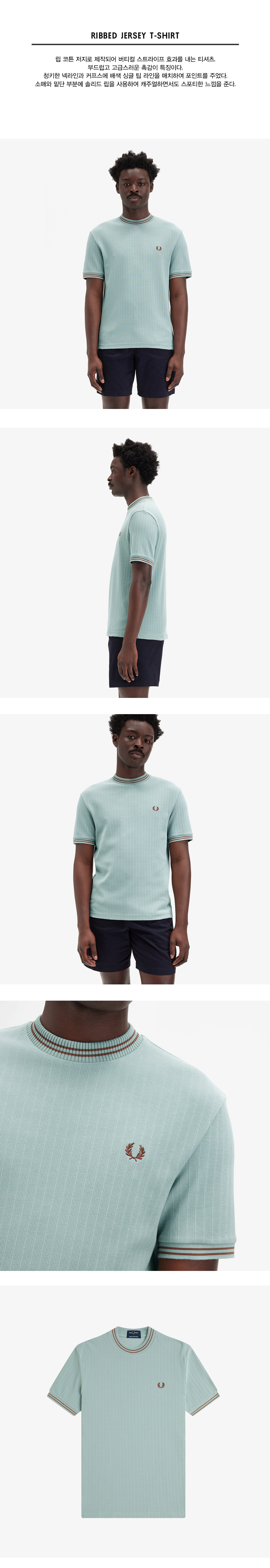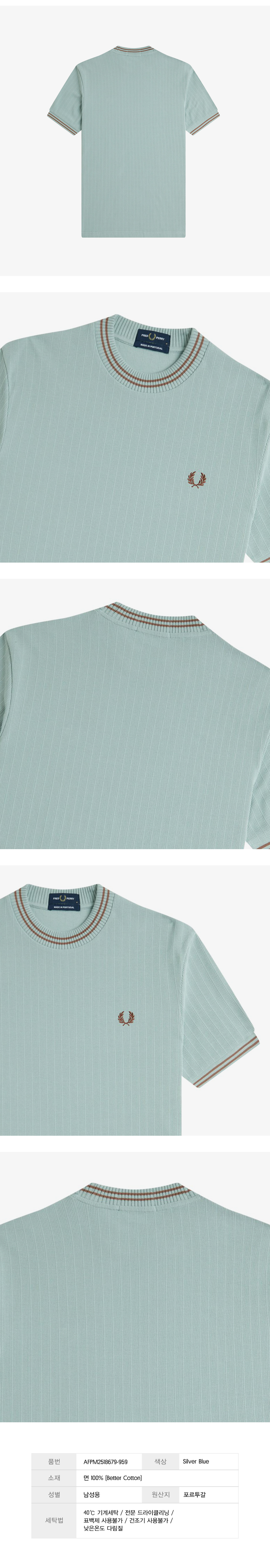 프레드페리 립 저지 티셔츠 실버 블루