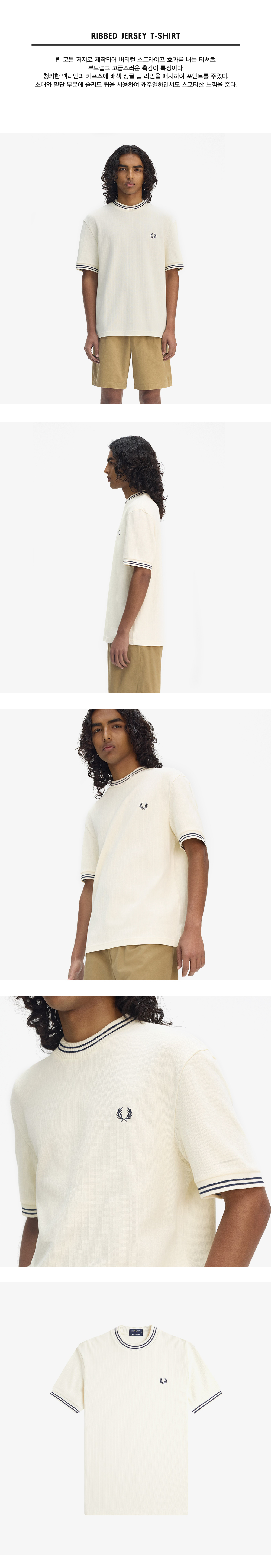 프레드페리 립 저지 티셔츠 에크루