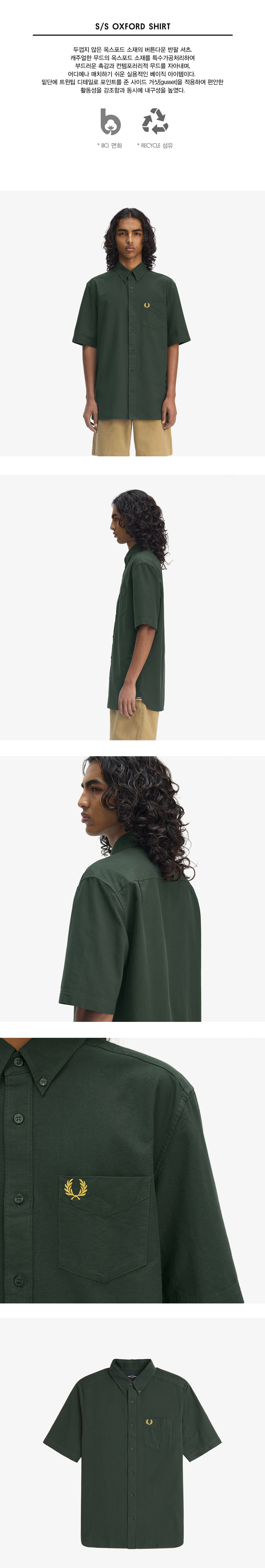 프레드페리 숏 슬리브 옥스포드 셔츠 코트 그린