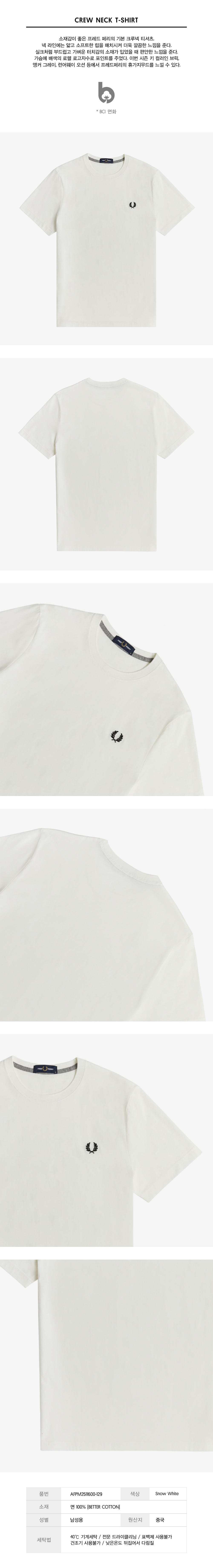 프레드페리 크루넥 티셔츠 스노우 화이트