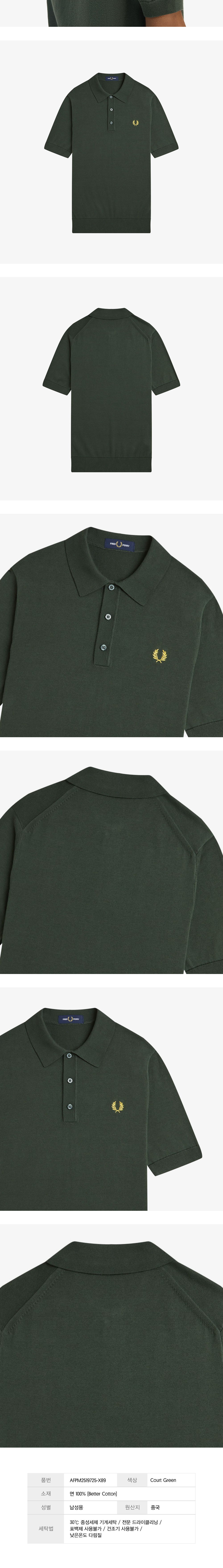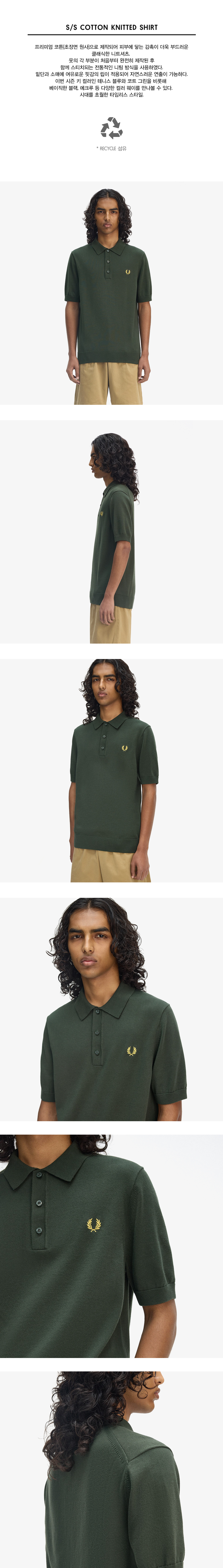 프레드페리 숏 슬리브 코튼 니트 셔츠 코트 그린