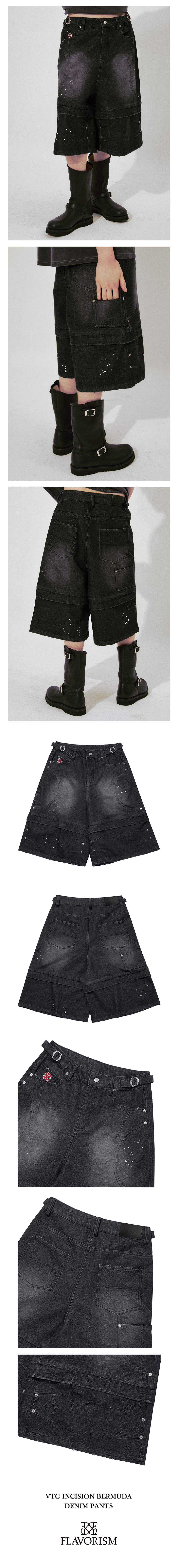 플레이버리즘 인시전 버뮤다 데님팬츠 블랙