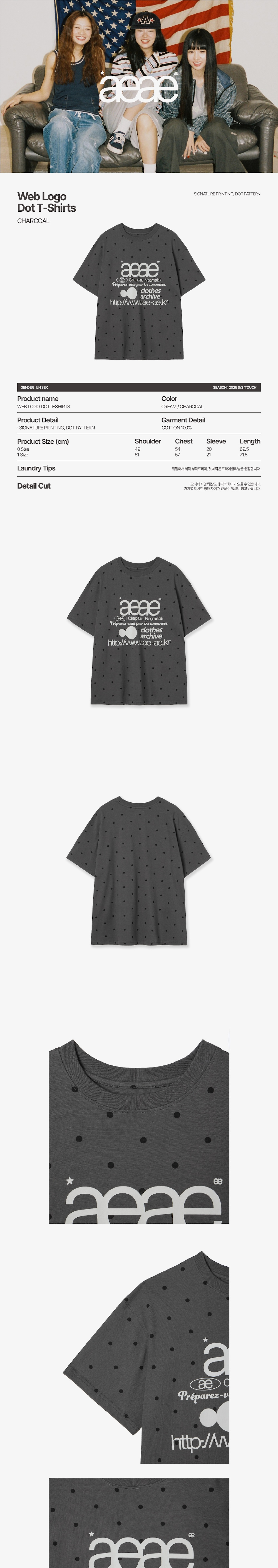 에이이에이이 웹 로고 도트 티셔츠 차콜