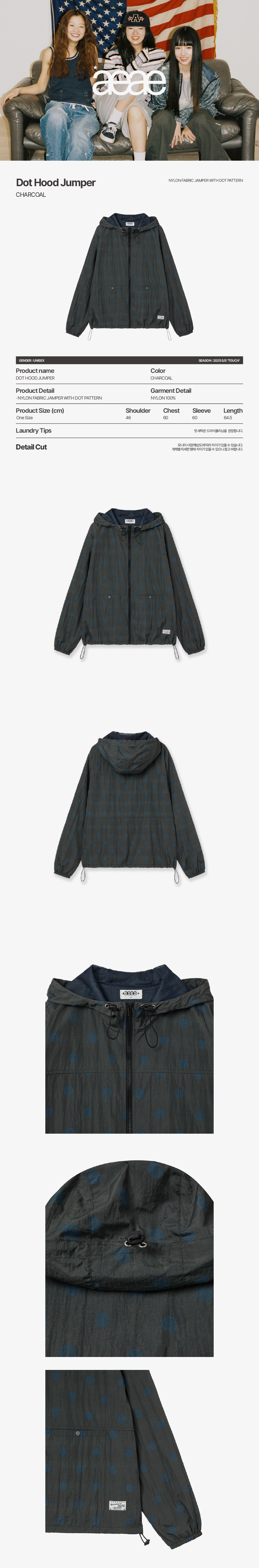 에이이에이이 도트 후드 점퍼 차콜