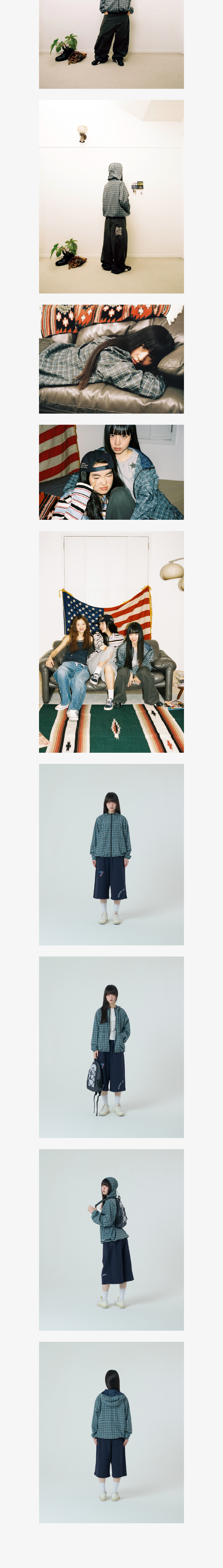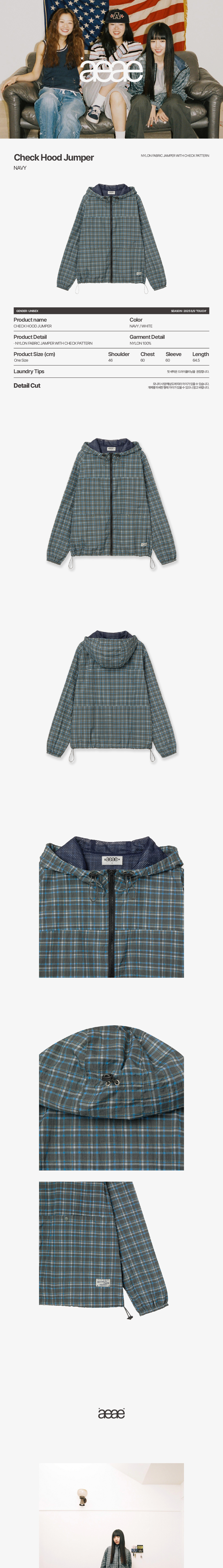 에이이에이이 체크 후드 점퍼 네이비
