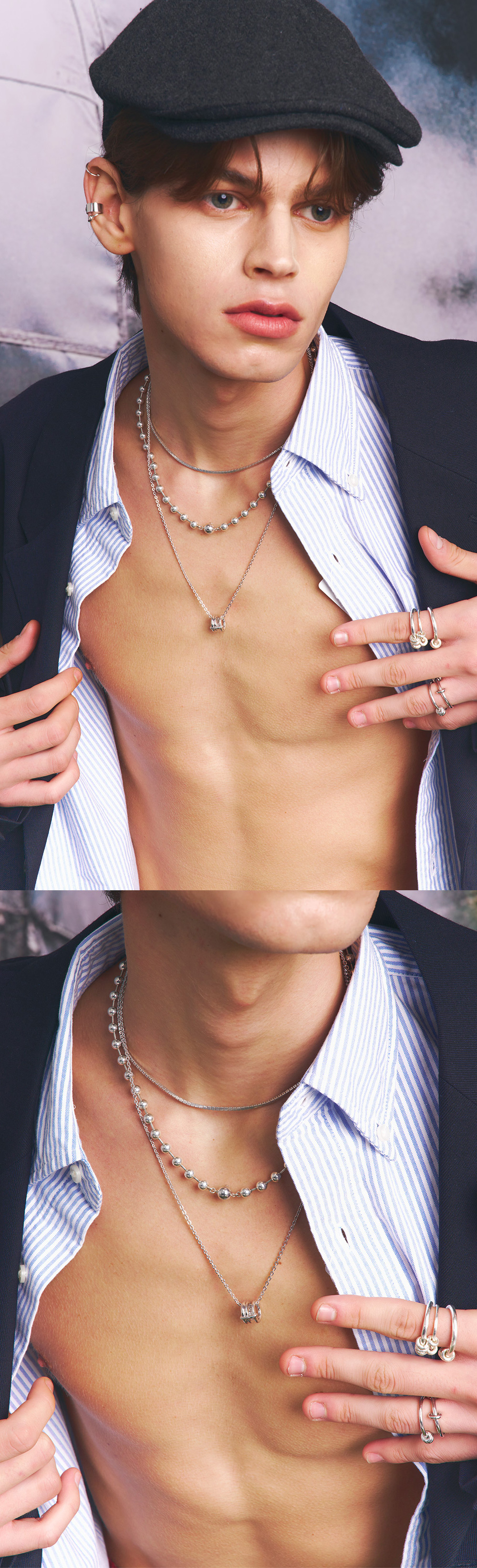 주문제작 상품 (주문 후 7-10일 이내 출고) 네추럴한 빛의 화이트 스톤으로 부담스럽지 않으며 룩에 디테일을 추가하기 좋은 웨어러블한 아이템.
