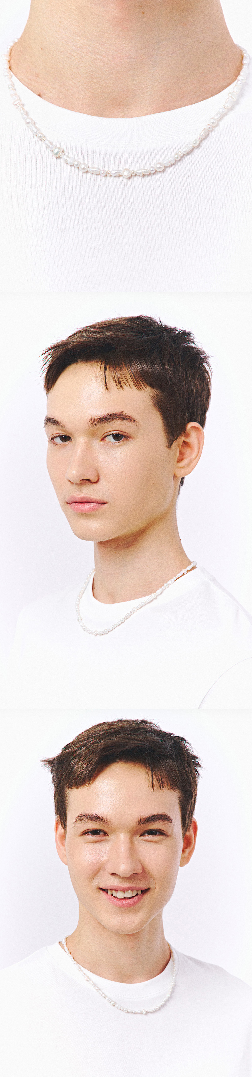 주문제작 상품 (주문 후 7-10일 이내 출고) Blue Diamond Settings. 5가지 담수 진주를 연결하여 제작한 핸드메이드 펄 네크리스.