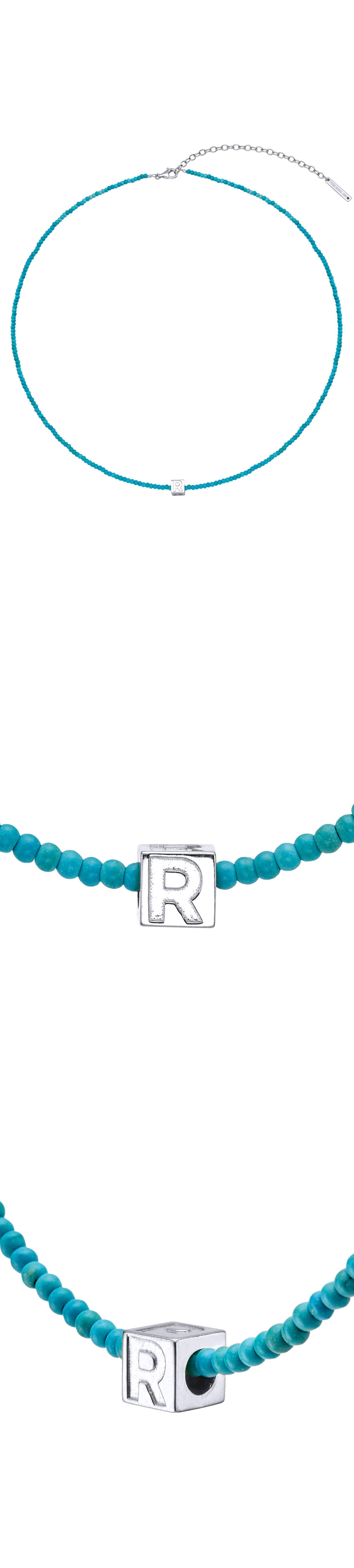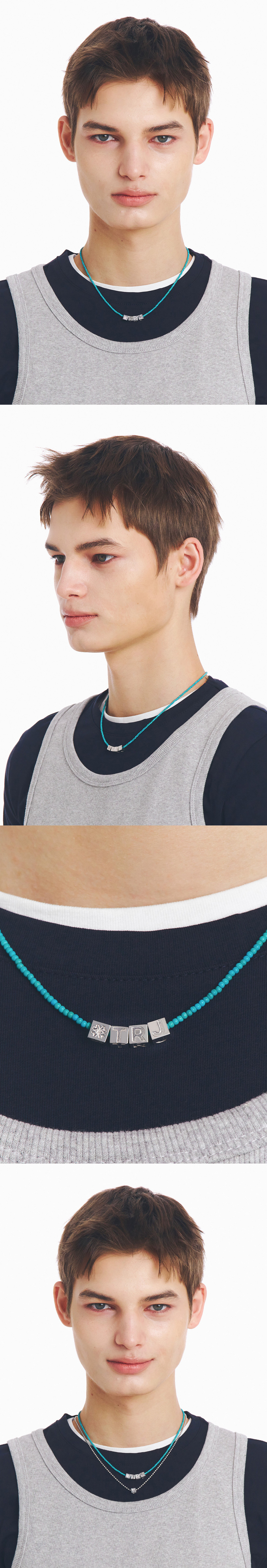 [예약 배송] 티링제이 큐브 이니셜 터쿼이즈 네크리스 실버