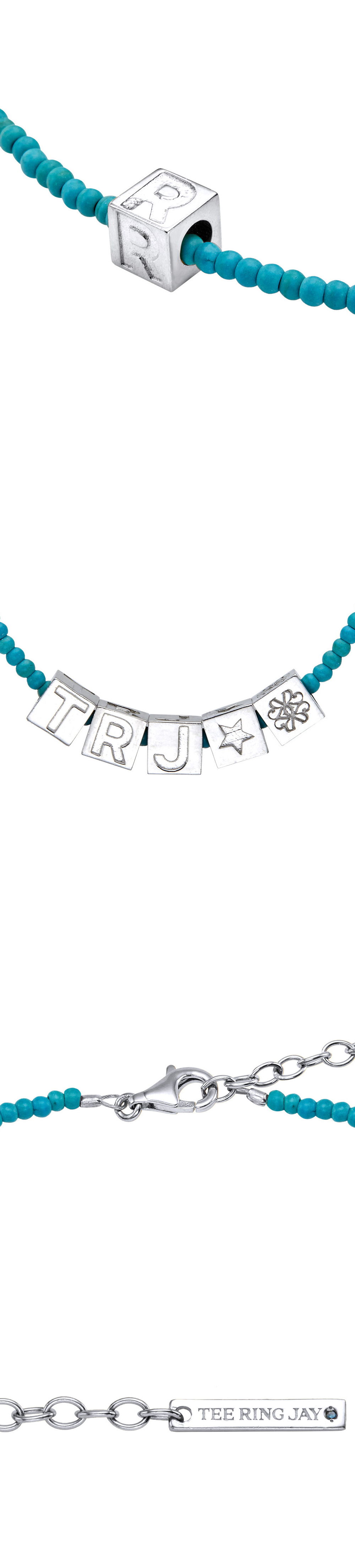 [예약 배송] TEE RING JAY Cube Initial Turquoise Necklace Silver