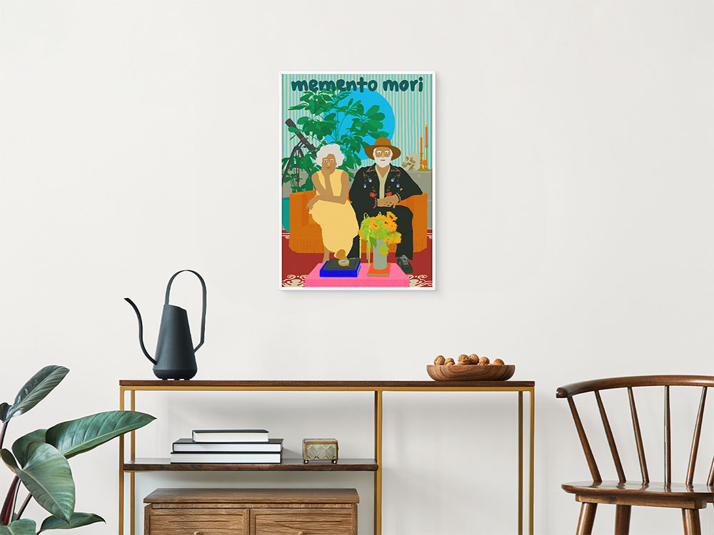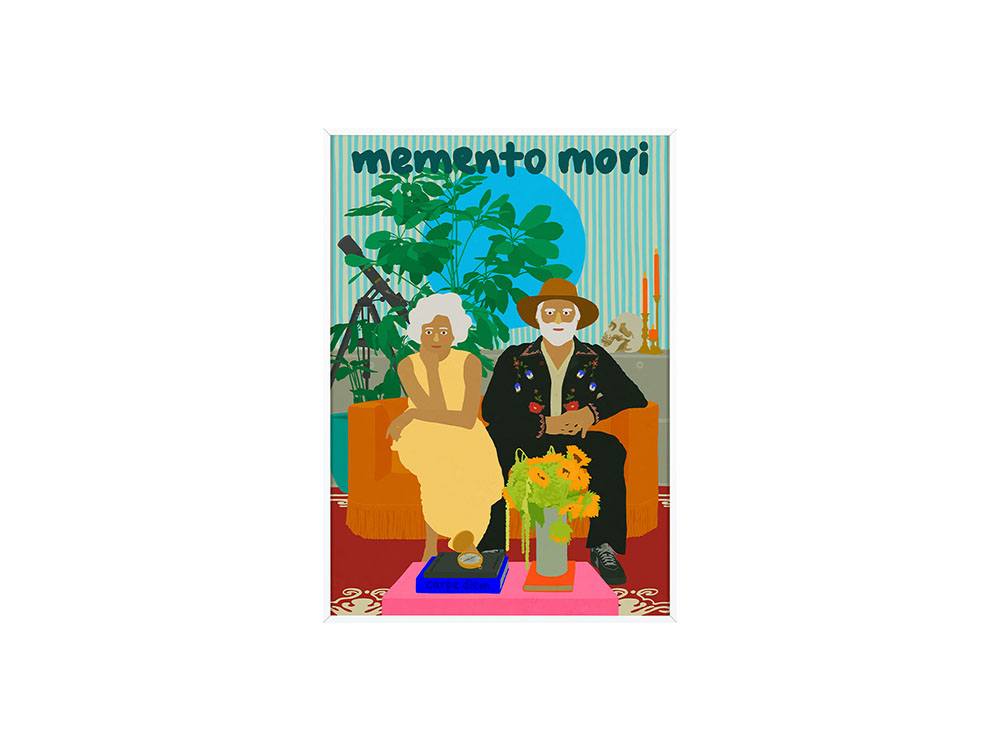 크기 : Frame 59.4x42cm 제작방식 : Pigment printing 소재 : German Durix Premium Matte 233g 에디션 : Open edition 작가의 신작 MEMENTOMORY는 "죽음을 기억하며 살아가야 한다는 것, 오늘 지금을 감사하며 기쁨으로 살아야한다."는 한스 홀바인의 대사에 영감을 얻어 그린 작품이다. 분주함과 두려움, 걱정 등으로 지금 이 때를 잃어버리고 살고있는 모습을 해골, 천체망원경, 나침반 등 상징적인 요소들을 통하여 암시한다. 해골은 죽음을 기억하고 생각하며 인생의 기한이 한정적이라는 것에 대한 의미를, 천체망원경은 우주를 바라보며 멀리 넓게 바라볼 수 있는 시야를, 나침반은 삶의 방향성을 떠올리게 한다. 생을 살아가는 동안 거쳐갈 청년, 중년 그리고 노년의 시기에 아름답고 그 시기만의 기쁨을 누리며 살아가는 것에 대한 작가의 메세지를 담고있다.