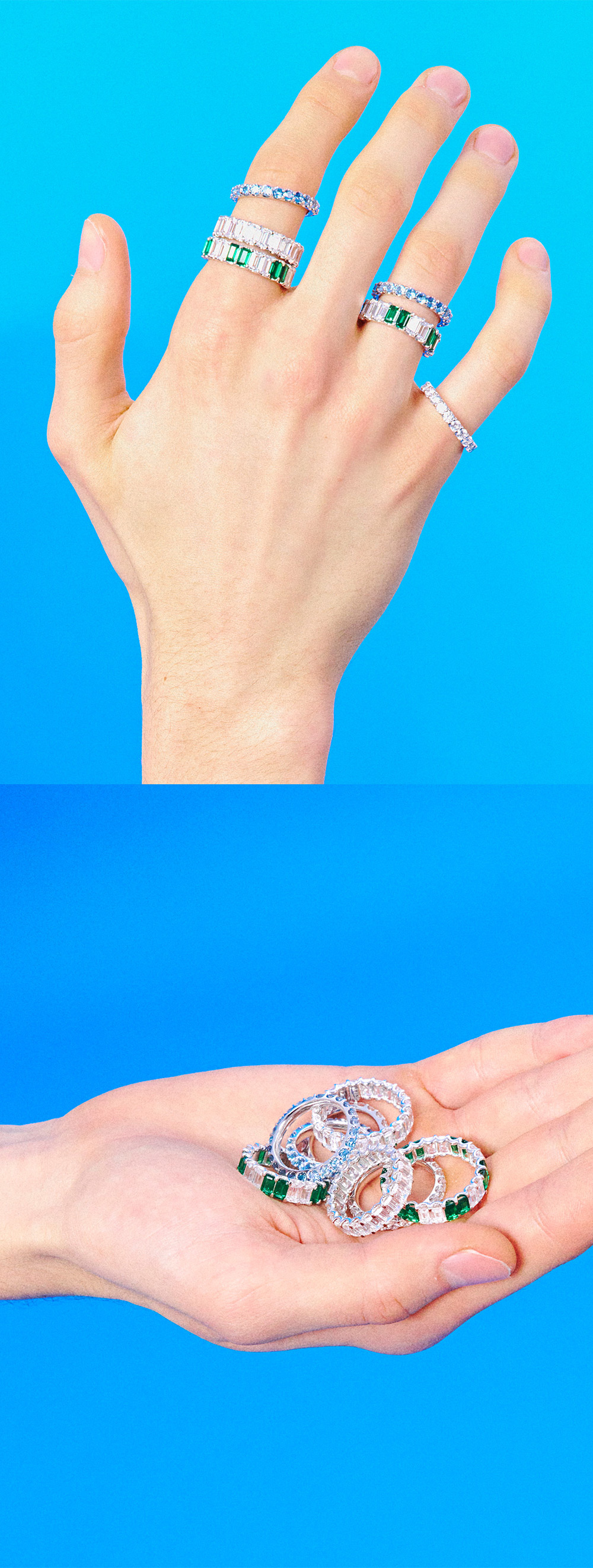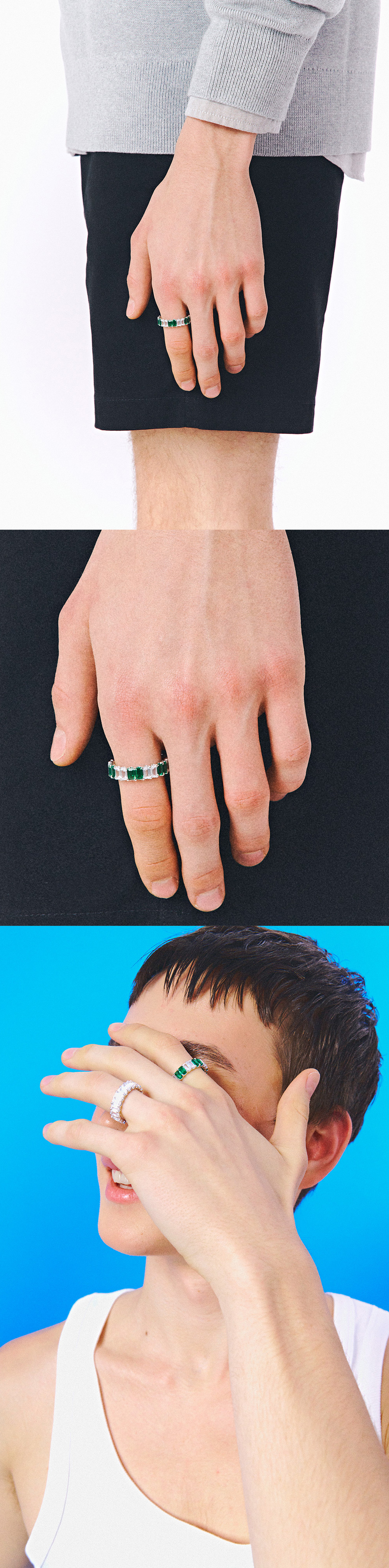 [예약 배송] TEE RING JAY Green Combination Baguette Eternity Ring