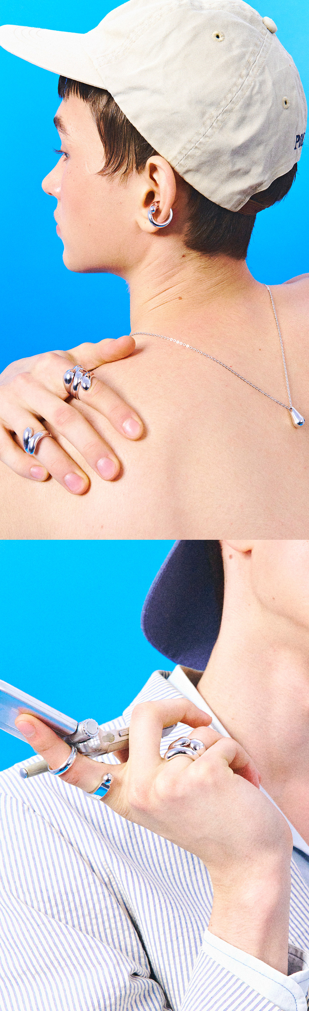 주문제작 상품 (주문 후 7-10일 이내 출고) / Blue Diamond Settings. 핸드 폴리싱으로 자연스러운 물결을 표현한 유기적인 텍스처의 디자인. 연결부위가 고정되어 있어 형태가 변형되지 않으며 안정적인 착용감을 선사하는 제품. 'Liquid twice ring' 와 함께 착용하면 볼드한 룩으로 더욱 멋스럽게 착용하실 수 있습니다.