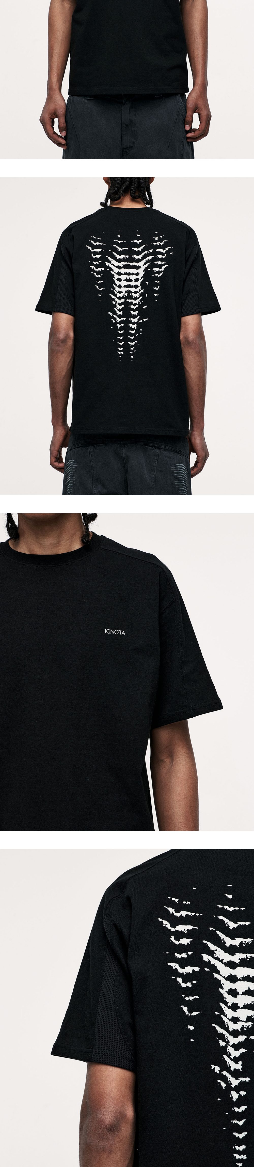 래글런 디자인 전면 'IGNOTA' 로고 그래픽 후면 'AMMONITE' 그래픽 후면 소매 배색 패널 RAGLAN DESIGN FRONT 'IGNOTA' LOGO GRAPHIC BACK 'AMMONITE' GRAPHIC BACK SLEEVE FABRIC PANNEL