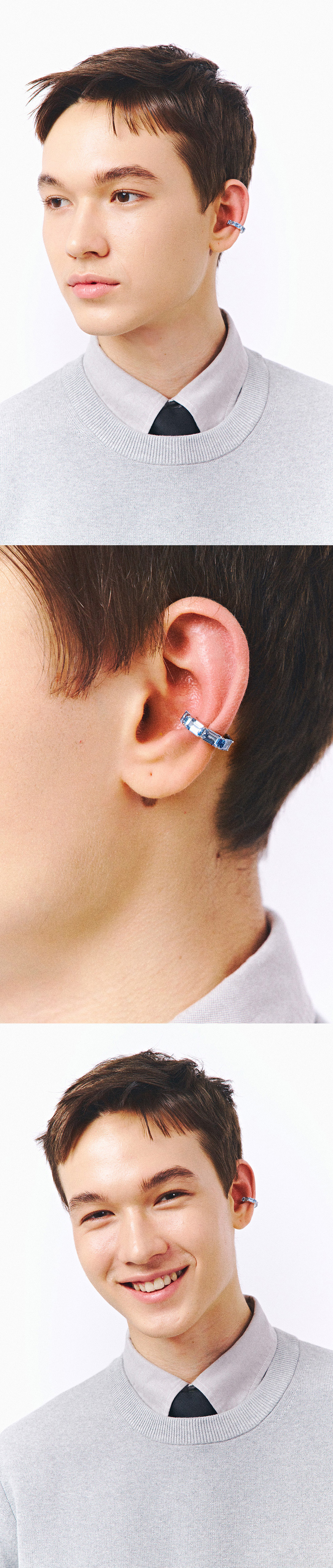 주문제작 상품 (주문 후 7-10일 이내 출고) Blue Diamond Settings. 파인주얼리급 블루 스톤을 정교하게 세팅한 이터니티 이어커프. 은은한 컬러감으로 데일리룩에 포인트가 되어주는 제품.