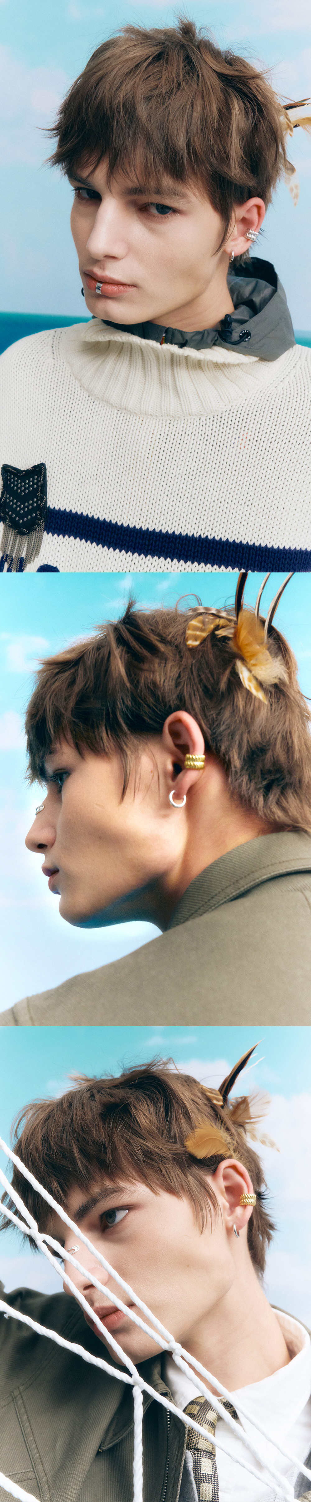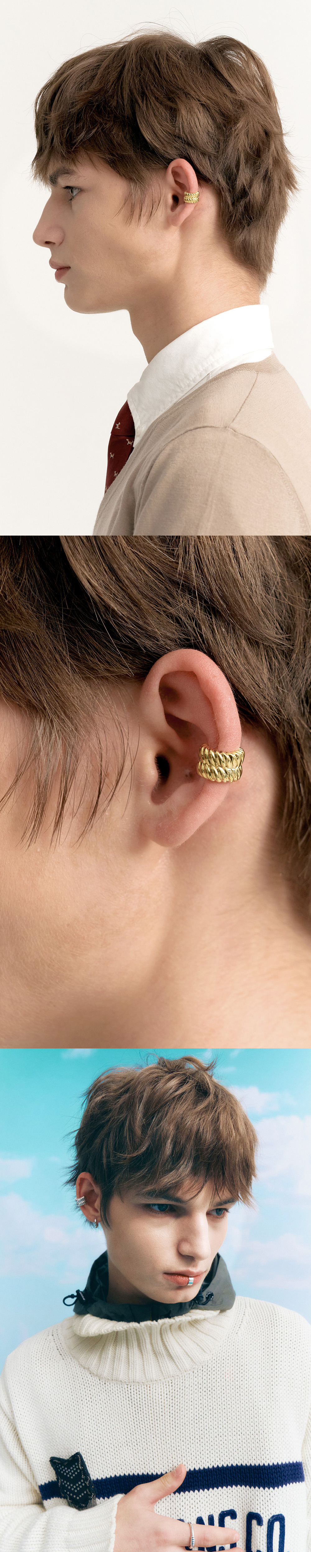 Blue Diamond Settings. 시즌 컨셉인 'Sailer'의 투박한 밧줄에서 영감을 받은 트위스트 디테일의 이어커프. 밧줄의 굴곡을 정교하게 표현한 핸드메이드 제품. 볼드하고 빈티지한 무드로 웨어러블하게 착용할 수 있는 아이템.