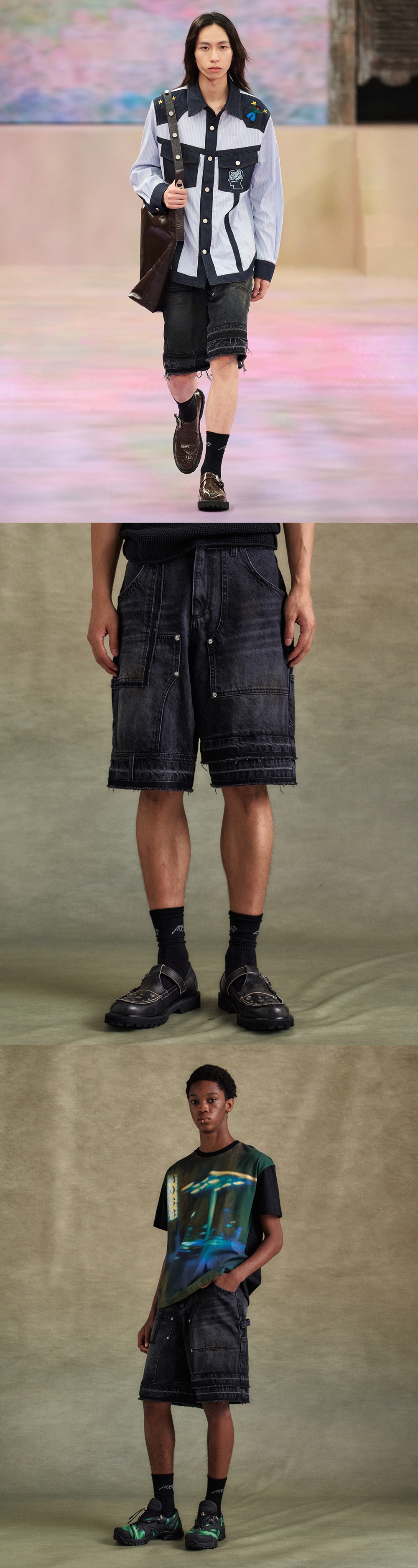 앤더슨벨 유니섹스 패치워크 데님 쇼츠 블랙
